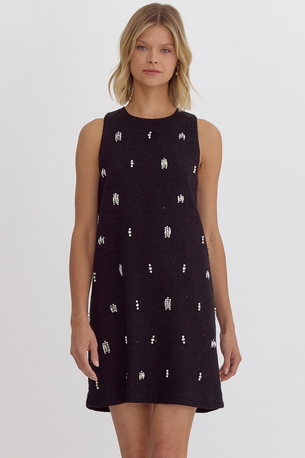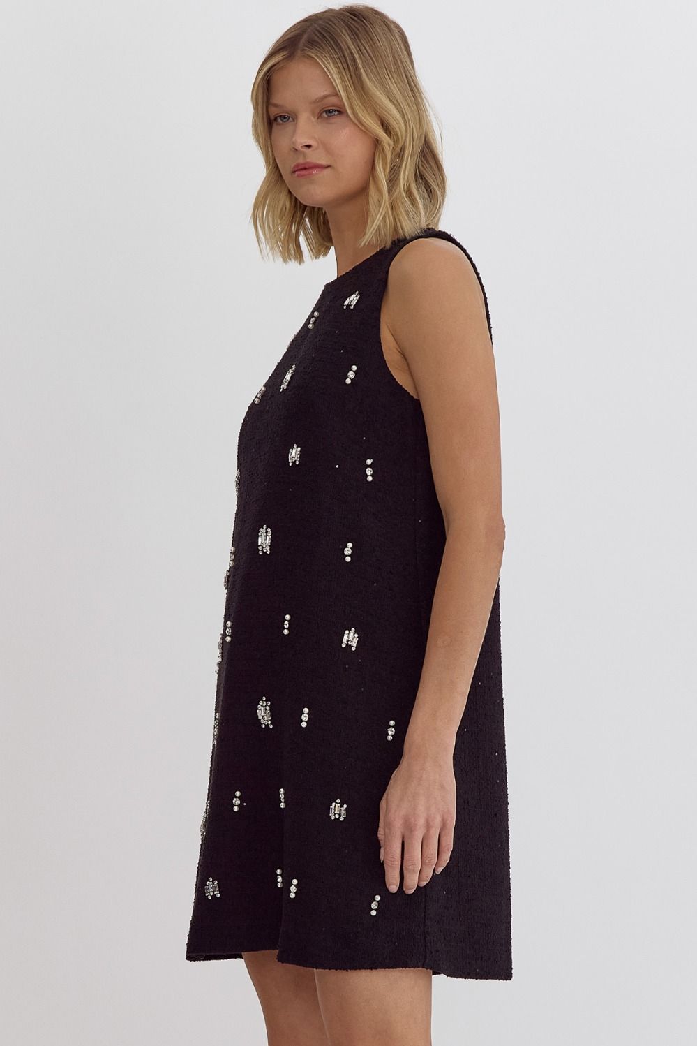⨠Embrace unparalleled elegance with our Solid Round Neck Sleeveless Mini Dress, a masterpiece adorned with dazzling rhinestones! This stunning piece is designed to make you shine at every occasion. From the chic round neckline to the playful mini length, this dress embodies sophistication and style in its purest form.