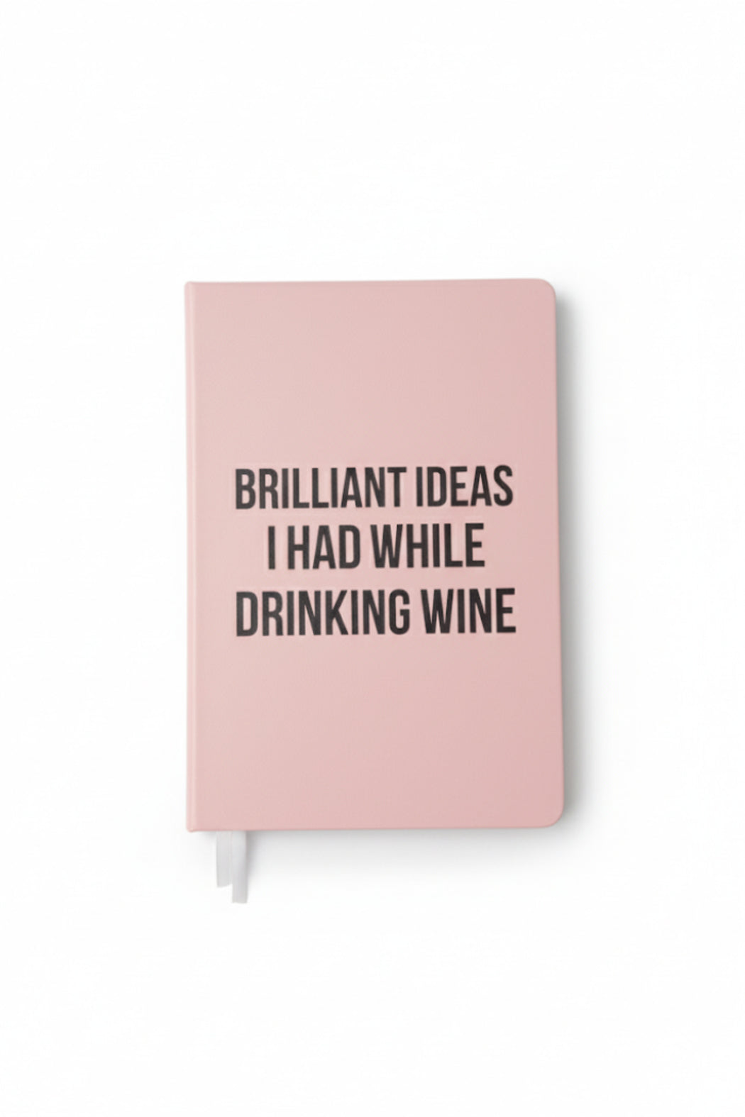 The "Brilliant Ideas I Had While Drinking Wine" Journal Capture every moment of genius with this hilariously relatable "Brilliant Ideas I Had While Drinking Wine" Journal! Perfect for wine lovers, creative thinkers, and anyone who's ever had a midnight epiphany, this cute notebook is the ideal place to jot down those truly inspired thoughts. Why This Wine Journal is a Must-Have: Hilarious & Relatable Cover: The playful phrase is guaranteed to bring a smile (and a knowing nod!) to anyone who sees it. It makes a perfect gift and a fun personal accessory. Perfect for Ideas: Whether it's a new business plan, a dinner party theme, or a genius observation, this funny notebook is ready to capture your best (and buzziest) brainstorming sessions. Chic & Portable Design: The beautiful soft pink cover gives it a chic, boutique feel. It's the ideal size to toss in your purse, keep on your nightstand, or carry to your next wine-and-cheese night. High-Quality Pages: Use it as a traditional journal, a planning notebook, or a diary. The quality paper is ready for your penmanship, doodles, and lists. Thoughtful Wine Lover Gift: Pair this journal with a bottle of wine or a unique tumbler for the ultimate gift set for a friend, hostess, or bridesmaid. Product Details: Style: Hardcover or Softcover Journal/Notebook Color: Blush Pink Text: "BRILLIANT IDEAS I HAD WHILE DRINKING WINE" Feature: Includes ribbon bookmark (as shown) Use: Idea Journal, Diary, Novelty Gift Stop letting those brilliant, wine-fueled ideas disappear into the ether! Grab your Pink Wine Lover's Journal today and make those dreams a reality (or at least, write them down).