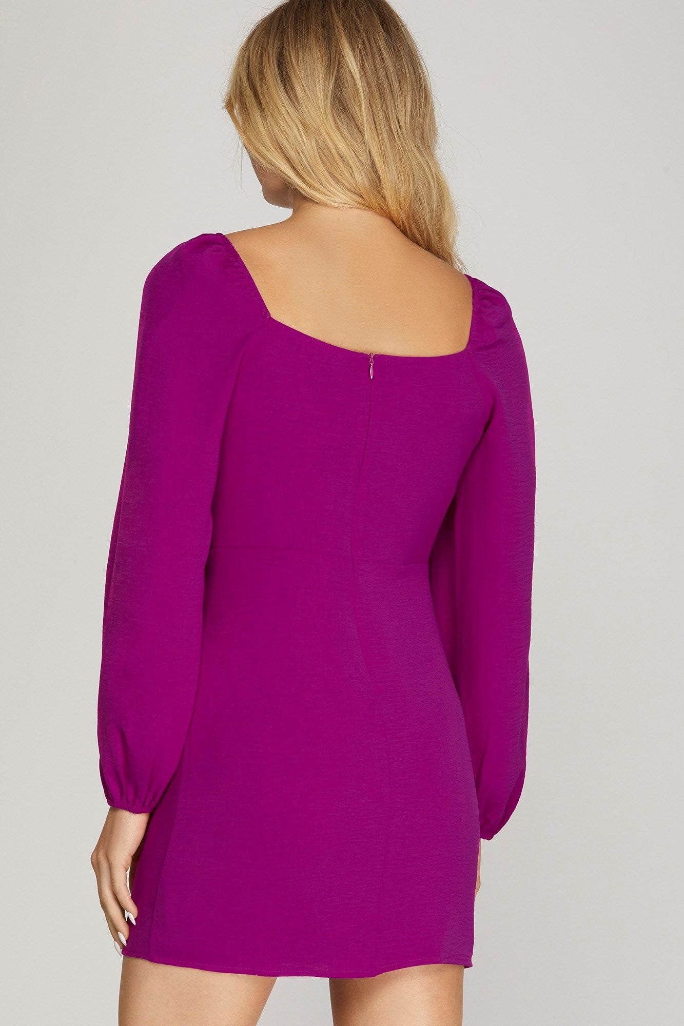 LONG SLEEVE SURPLICE WRAP WOVEN DRESS WITH SIDE TIE