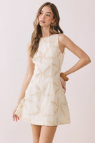 Lightweight and breezy, the Coastal Style Dress has a fitted bodice and a flared mini skirt embroidered with tonal motifs for a relaxed seaside vibe. The sleeveless silhouette keeps the look airy while the subtly structured linen-like fabric gives it shape. Pretty Follies designed this dress for casual days and vacation wardrobes where effortless, romantic details take center stage.