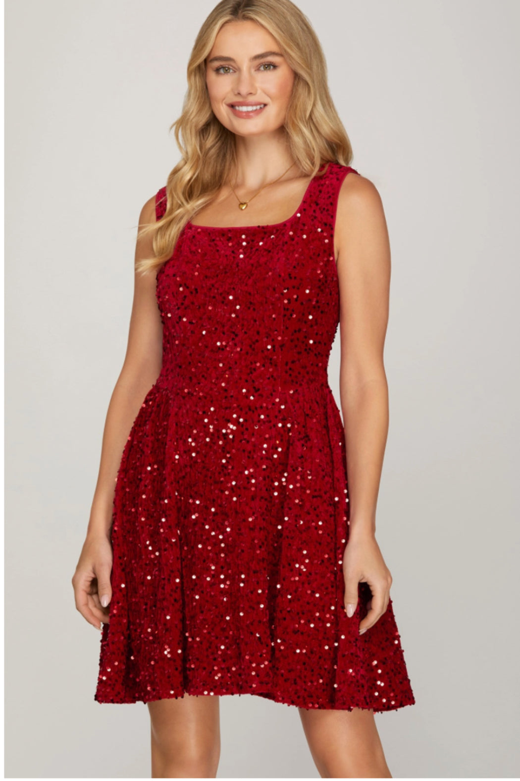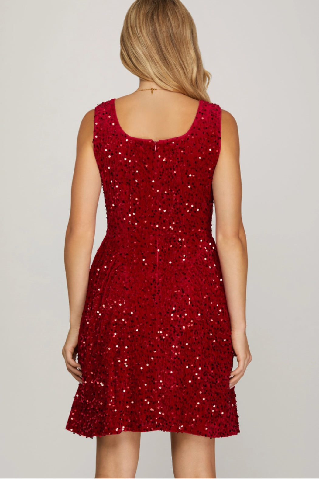 Color: Red Dress, Crimson Sequin, Ruby Red, Festive Red