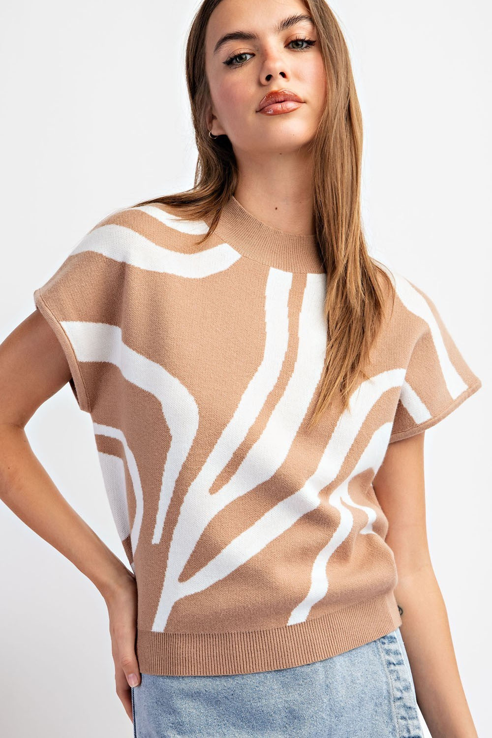 Swirl Printed Mock Neck Top