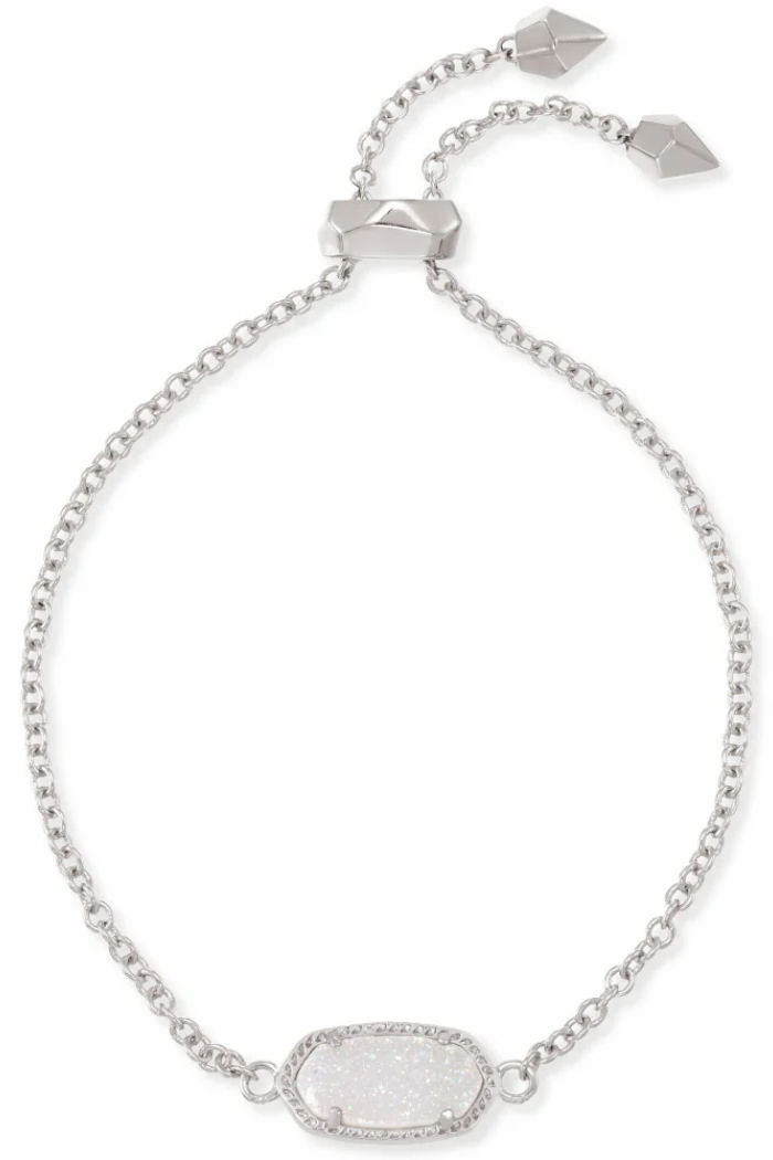 Whether you like your bracelets loose or close to the wrist, our Elaina Silver Adjustable Chain Bracelet in Iridescent Drusy is a delicate addition to any arm party. This stunning chain bracelet is a perfect go-to for everyday wear and adds a little extra sparkle to your outfit. Wear it alone or stack on more for a trend-forward look - either way, you can't go wrong with adding the Elaina Silver Adjustable Chain Bracelet to your jewelry box.