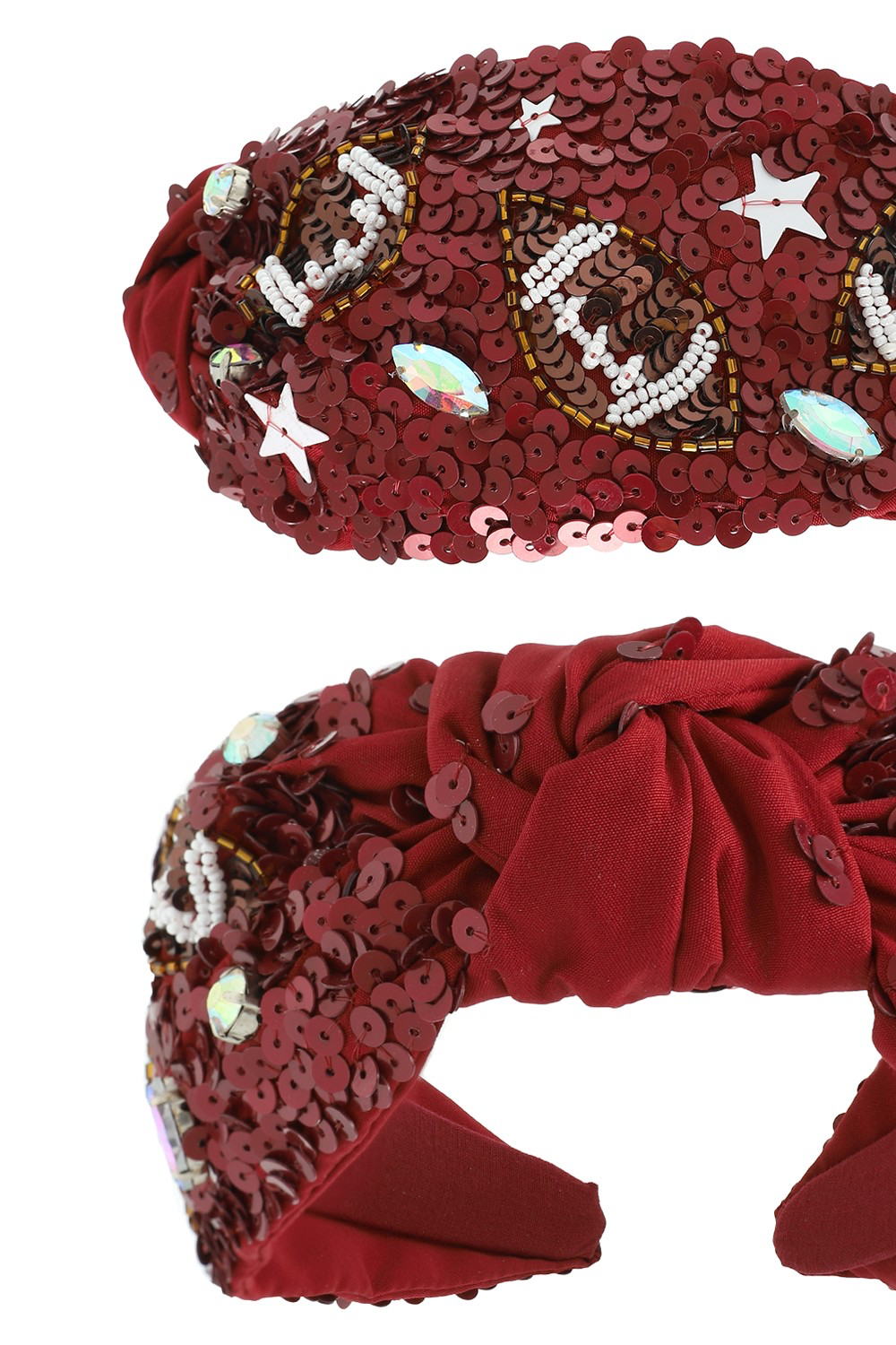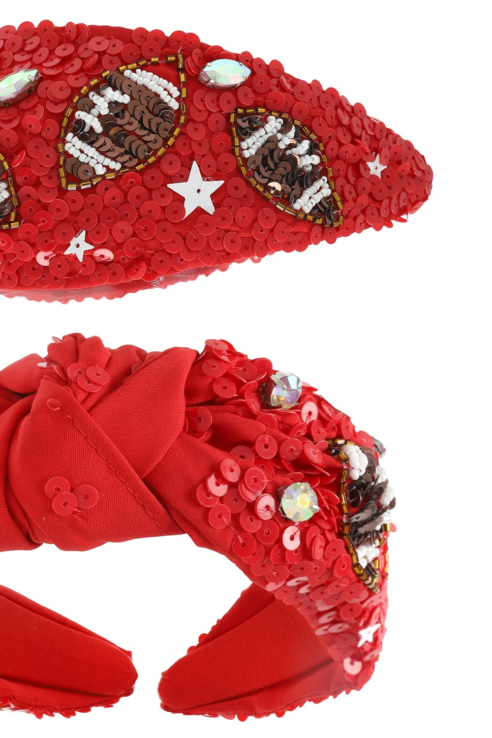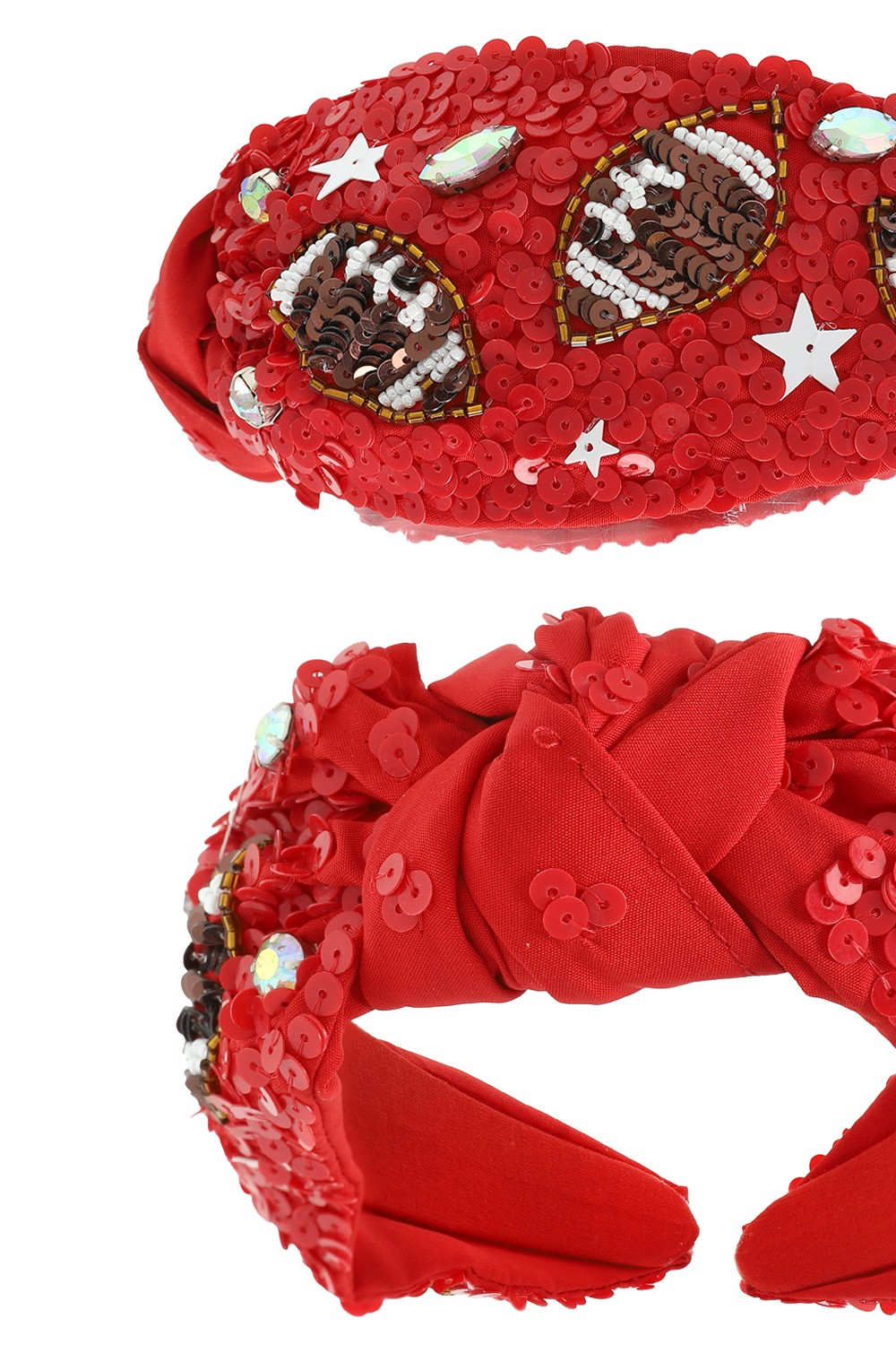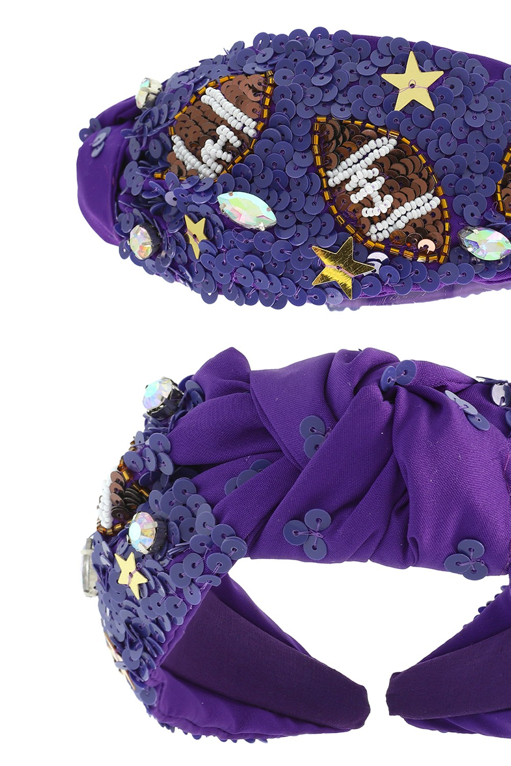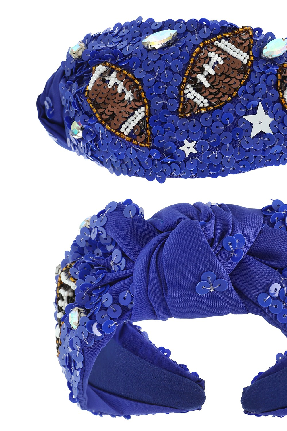 Add some bling to your wardrobe and celebrate in style with our embellished top knotted headband. Whether you're on the field or in the stands, let your love for football sparkle through every bead and stitch!