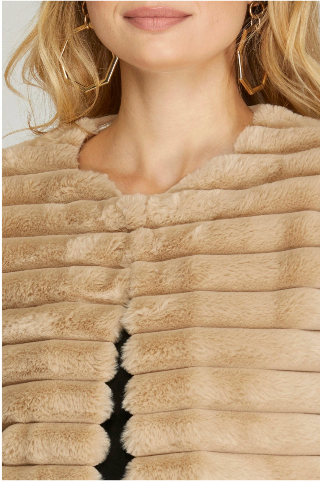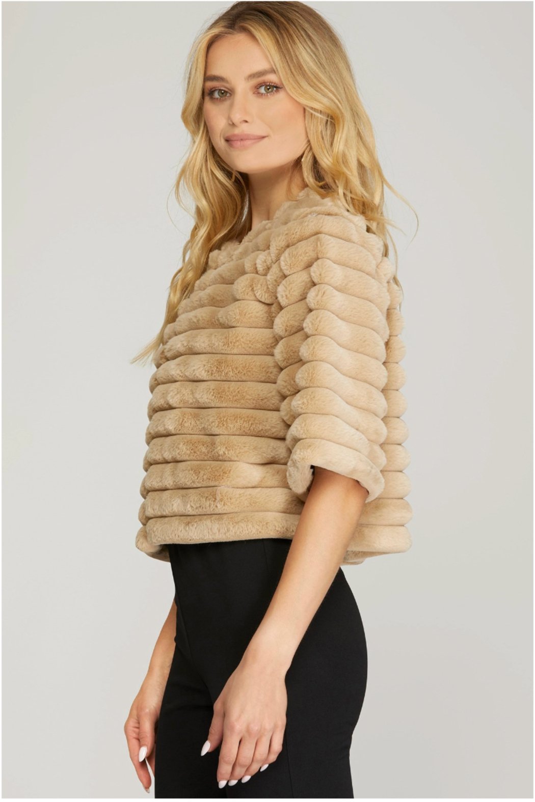 Luxe Ribbed Faux Fur: Ultra-soft, high-quality material with a unique textured design.