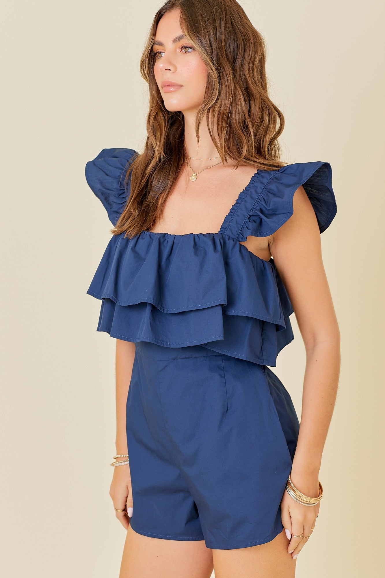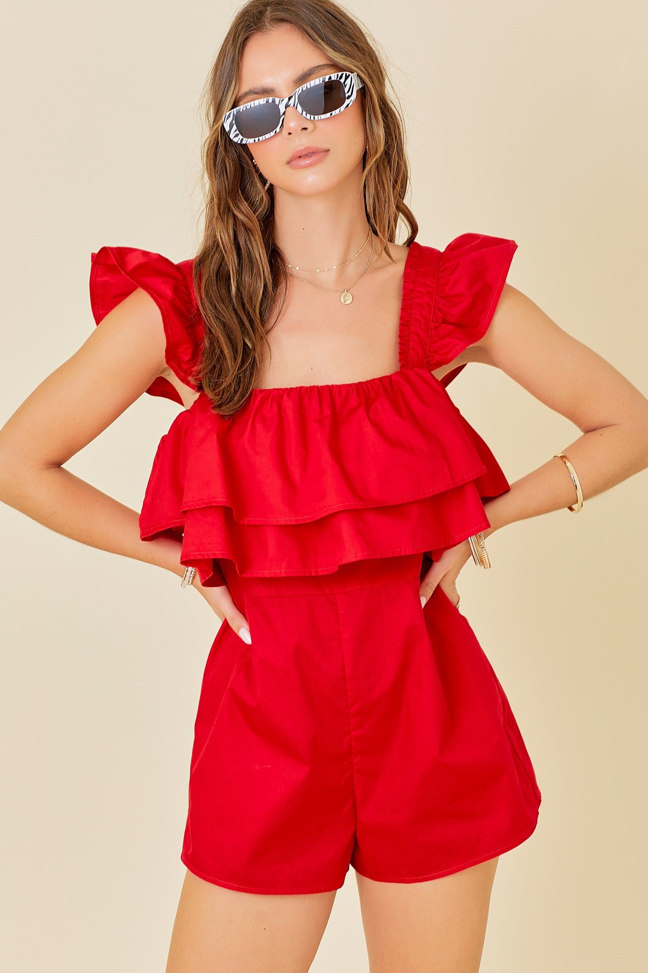 🏈✨ Game day glam just got a major upgrade with our Double Tiered Square Neck Ruffle Detail Romper! Whether you're cheering from the stands or hosting a watch party at home, this romper brings fashion-forward flair to your game day look. 😍