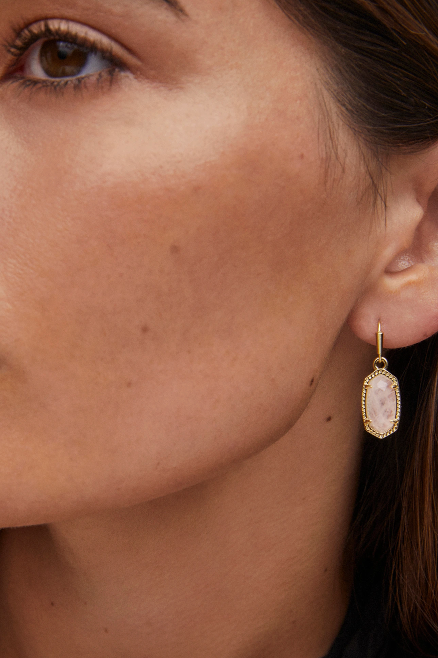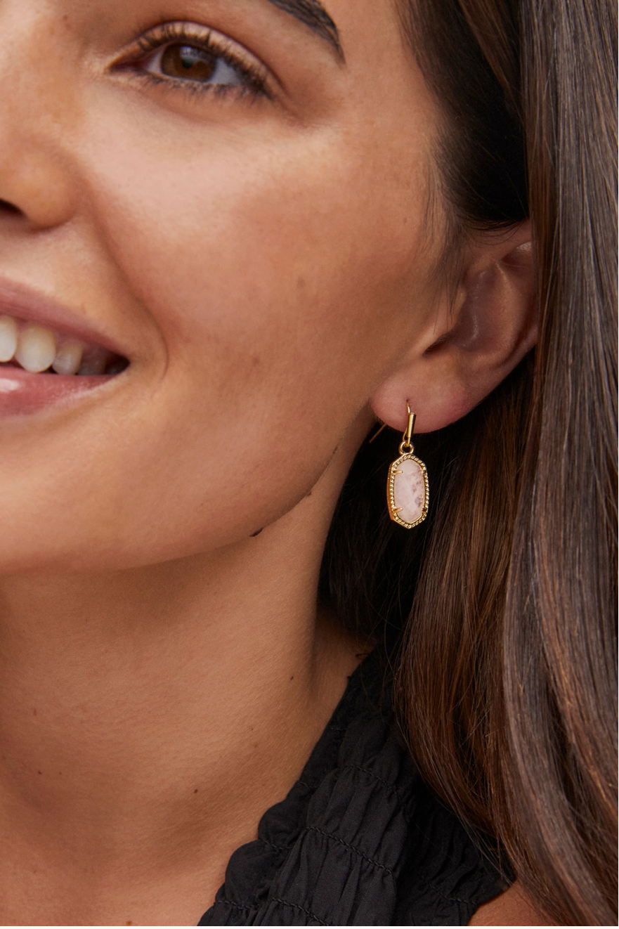 Lee Gold Earrings in Rose Quartz – A Dainty Twist on a Timeless Style