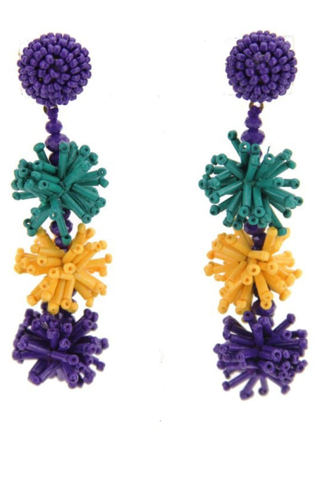 Mardi Gras Seed Bead Dangle Post Earrings. 3 inches long.