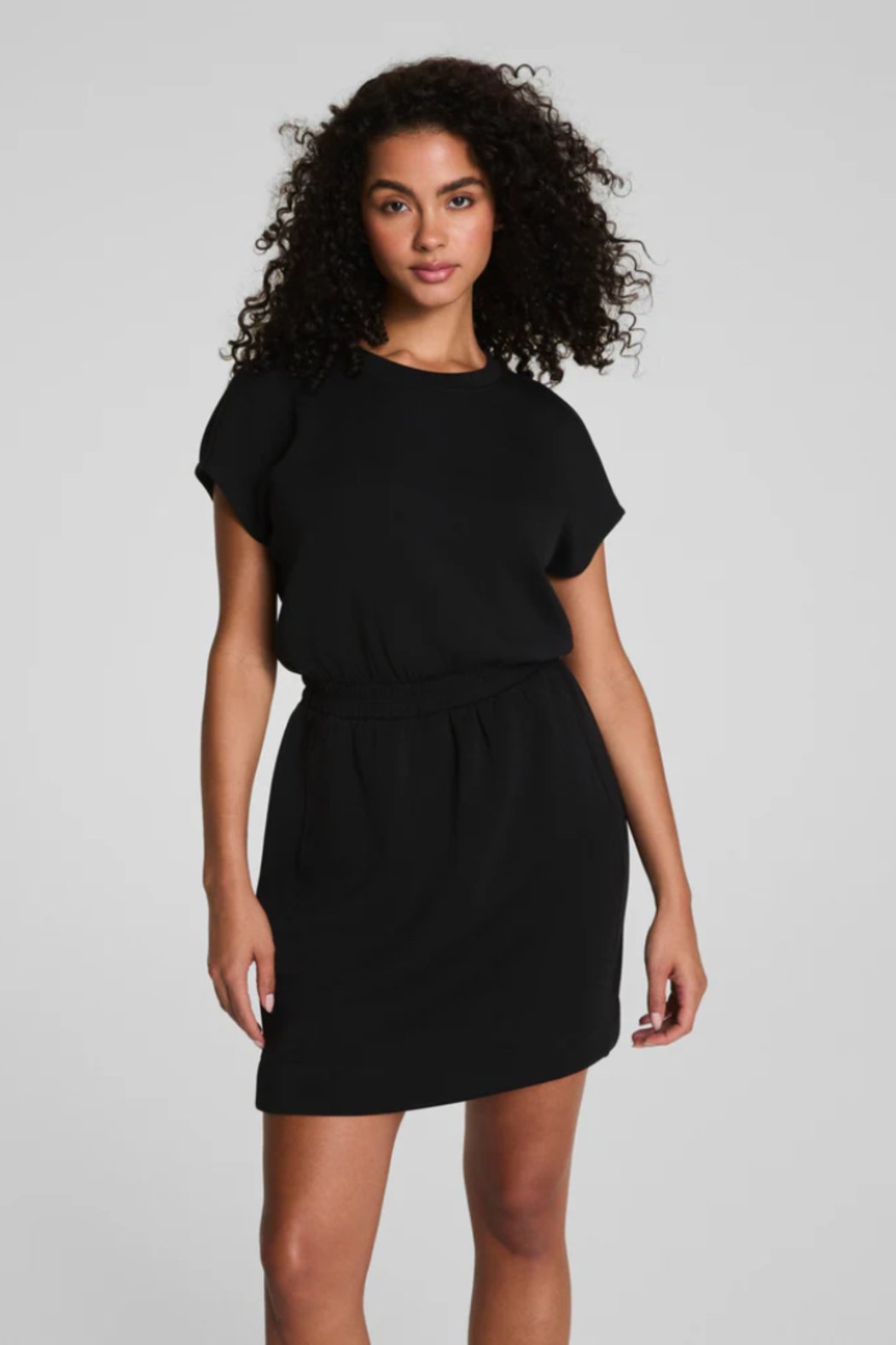 Our SPANX AirEssentials® Cinched Mini Dress is made with our ultra-drapey spacer fabric that's breathable, light-as-air, and oh-so soft. Designed with a relaxed A-line silhouette and a flattering cinched waist, this cap-sleeve dress features a classic crewneck and functional side pockets to hold your phone, cards, or keys. Perfect for everyday errands or traveling, this throw-on-and-go dress will take you anywhere and everywhere.