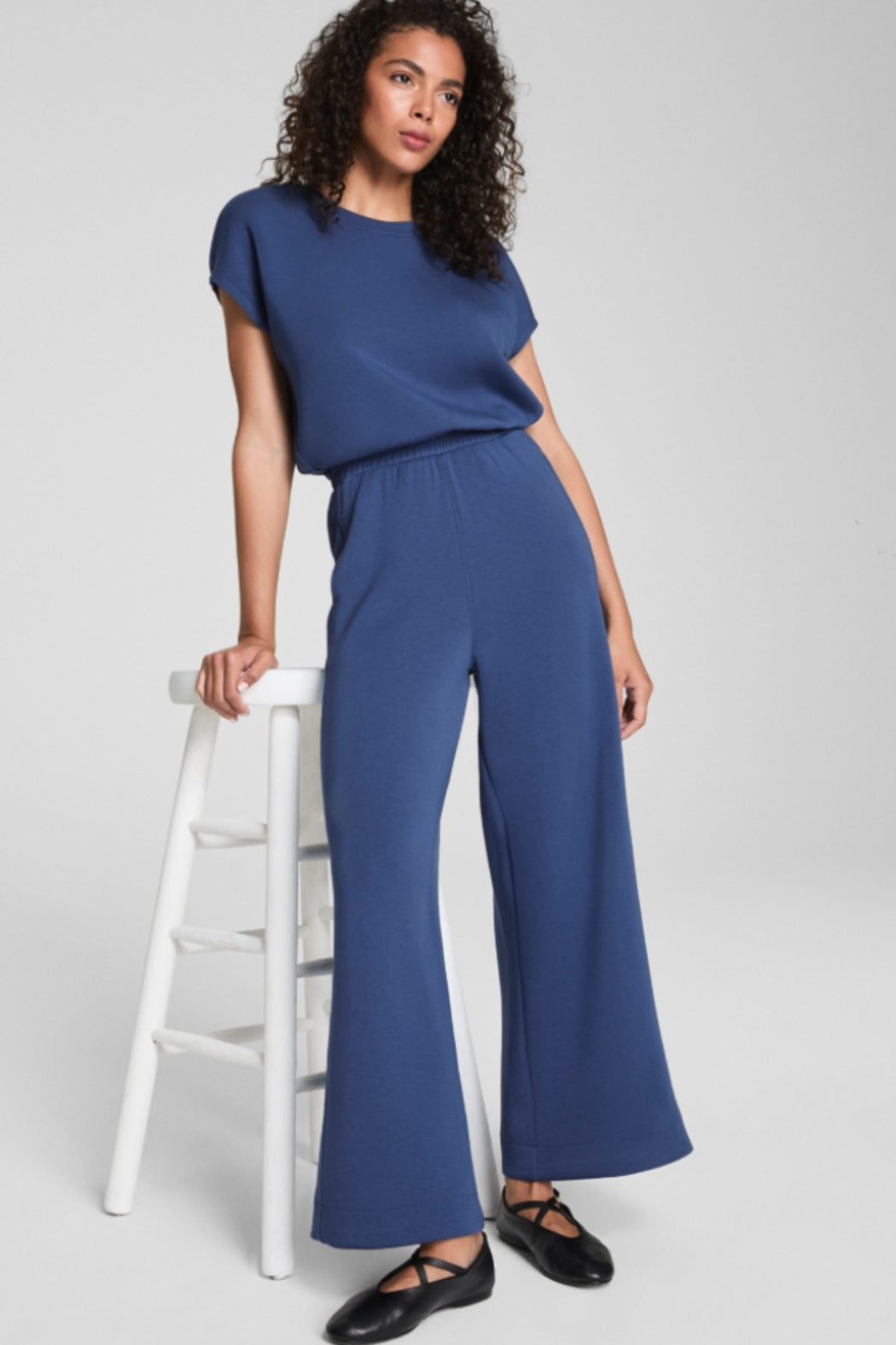 Our SPANX AirEssentials® Cap Sleeve Cinched Jumpsuit is made with our ultra-drapey spacer fabric that's lightweight, breathable, and oh-so soft. This versatile jumpsuit features a crew neckline, cap sleeves, and slanted front pockets, with a cinched tie waist to flatter your figure. Dressed up or down, this everyday essential is the perfect one-and-done, throw-on-and-go style that will take you anywhere and everywhere.