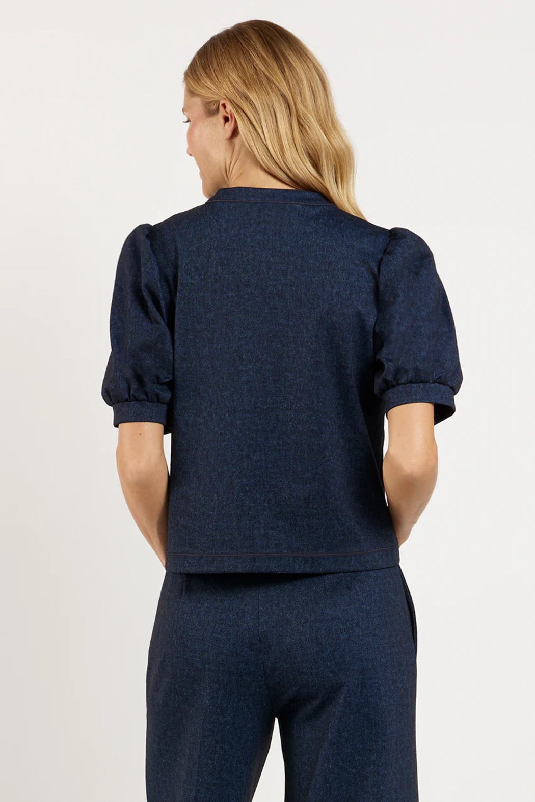 Say hello to your new favorite denim staple! This charming pullover top features a refined band neckline and short sleeves. It is the perfect balance of casual and polished. Crafted from our beautiful Jude Denim. It's an easy throw-on style that adds a feminine touch to any outfit! Made in the U.S.A. Details & Fit: Puff shoulder. Short sleeves. 22" from top of center back. (Size Small) Model is 5'9 and wearing a size Small.