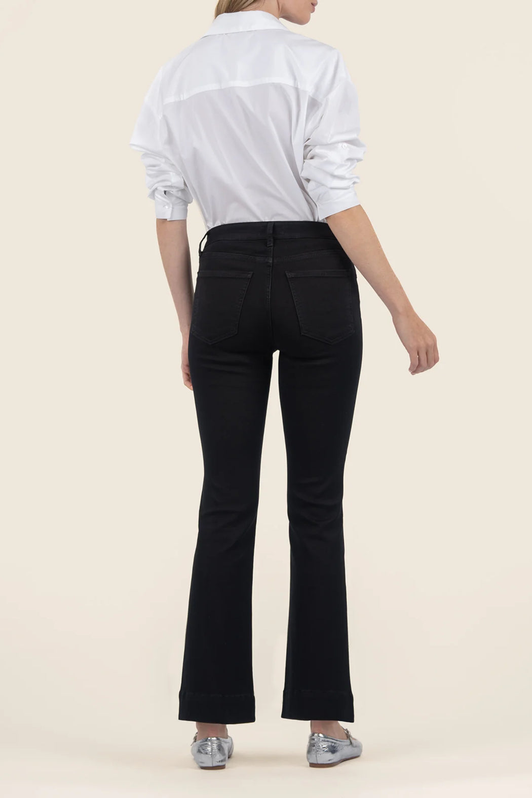 Made from a soft, stretchy fabric, these pants feature wide hems and a flattering fab ab design, offering a perfect blend of comfort and style. Their versatile, timeless look makes them an essential addition to any wardrobe.