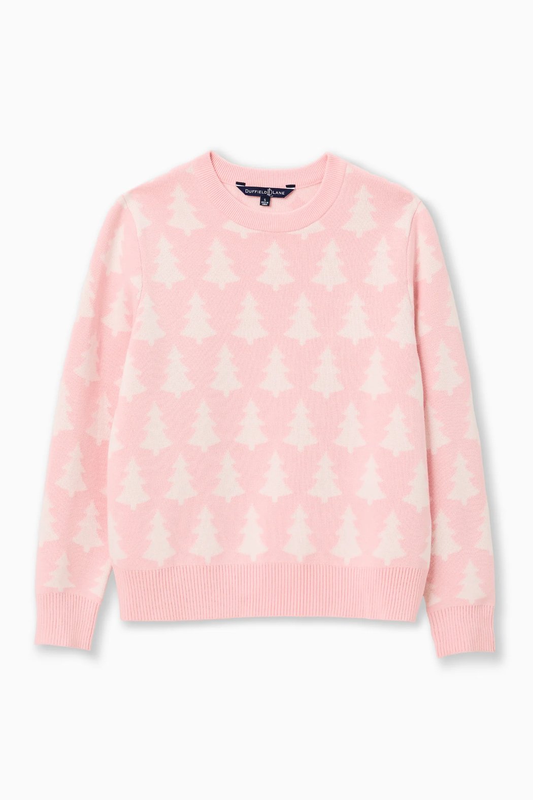 Soft intarsia tree pattern in tonal hues: light pink base & ivory trees