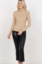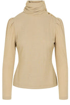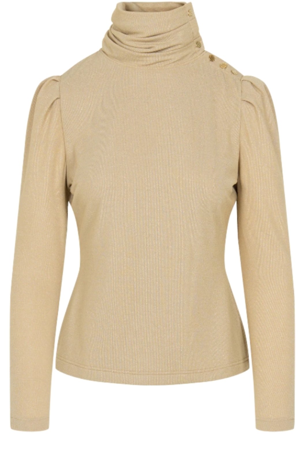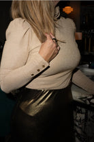 The Tessa Turtleneck in Metallic Gold Knit is an elevated layering essential with a subtle hint of shimmer. Designed with a gathered mock neck and delicate puff shoulder detail, it balances structure and femininity. Its slim, tailored silhouette offers a flattering fit, while metallic threading woven throughout the knit fabric adds a refined touch of sparkle. The perfect piece to wear on its own or layered under blazers and jackets for the season.