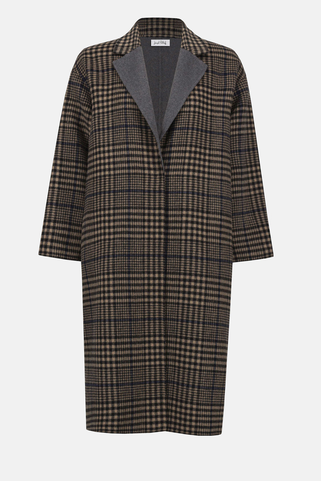 DESCRIPTION Smart and sophisticated, this wool blend coat combines warmth with timeless style. The double-faced plaid design is framed by a notched collar and V-shaped neckline for a classic yet modern look. Thoughtful details like hand-sewn snap closures and inseam pockets add a touch of craftsmanship to this elegant wardrobe staple. DETAILS & CARE 5% Other, 45% Polyester, 50% Wool Woven wool blend Plaid pattern Notched collar V-shape neckline Long straight sleeves Hand-sewn snaps Inseam pockets Unlined Do not wash Do not bleach Professional dry clean only Do not tumble dry Do not iron Exclusive of trims Made in China