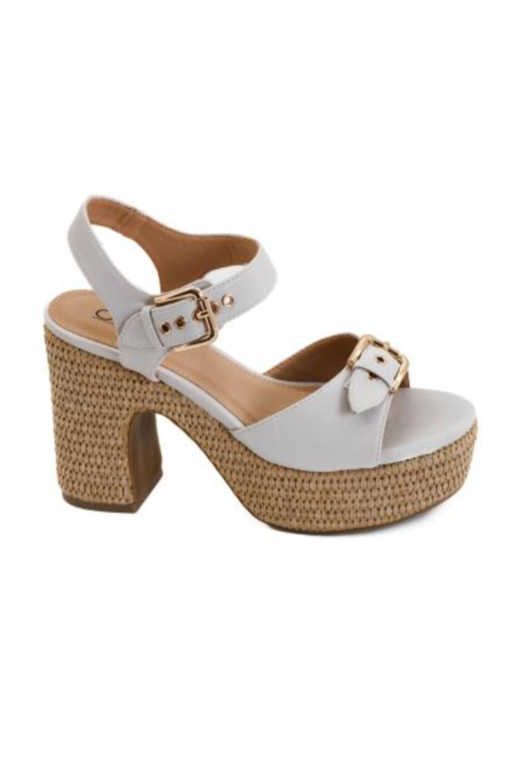 Daddys Money from Corkys Footwear - a platform sandal with a 4" chunky block heel. This shoe was made for sundresses and wide leg jeans! Featuring an adjustable ankle strap and toe strap with gold hardware, the sole is wrapped in a basket-weave texture adding that vacay summer vibe!