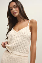 The Lexa Sweater Tank is a knit tank with a delicate scalloped V-neck and button-front detailing that reads both cozy and feminine. Lightweight sweater stitch gives it slight texture while the slim straps and sleeveless silhouette keep it breezy. This piece is from z supply and pairs effortlessly with high-waist skirts or jeans for casual daytime looks.