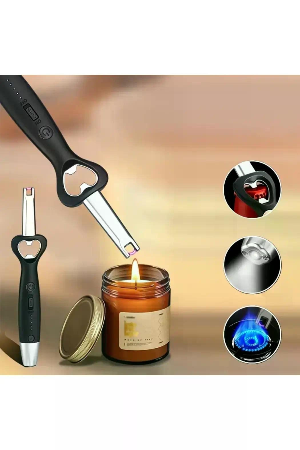 Capture the essence of cool with Mad Mans Deluxe Arc Spark lighter. This modern electric flameless lighter is USB rechargeable, waterproof with an integrated LED flashlight, and includes a built-in bottle opener making this the most functional lighter of its kind. Long neck design lights a variety of items safely, wind resistant, and safer than traditional fuel-based lighters. LED indicators display power level. USB cord included.