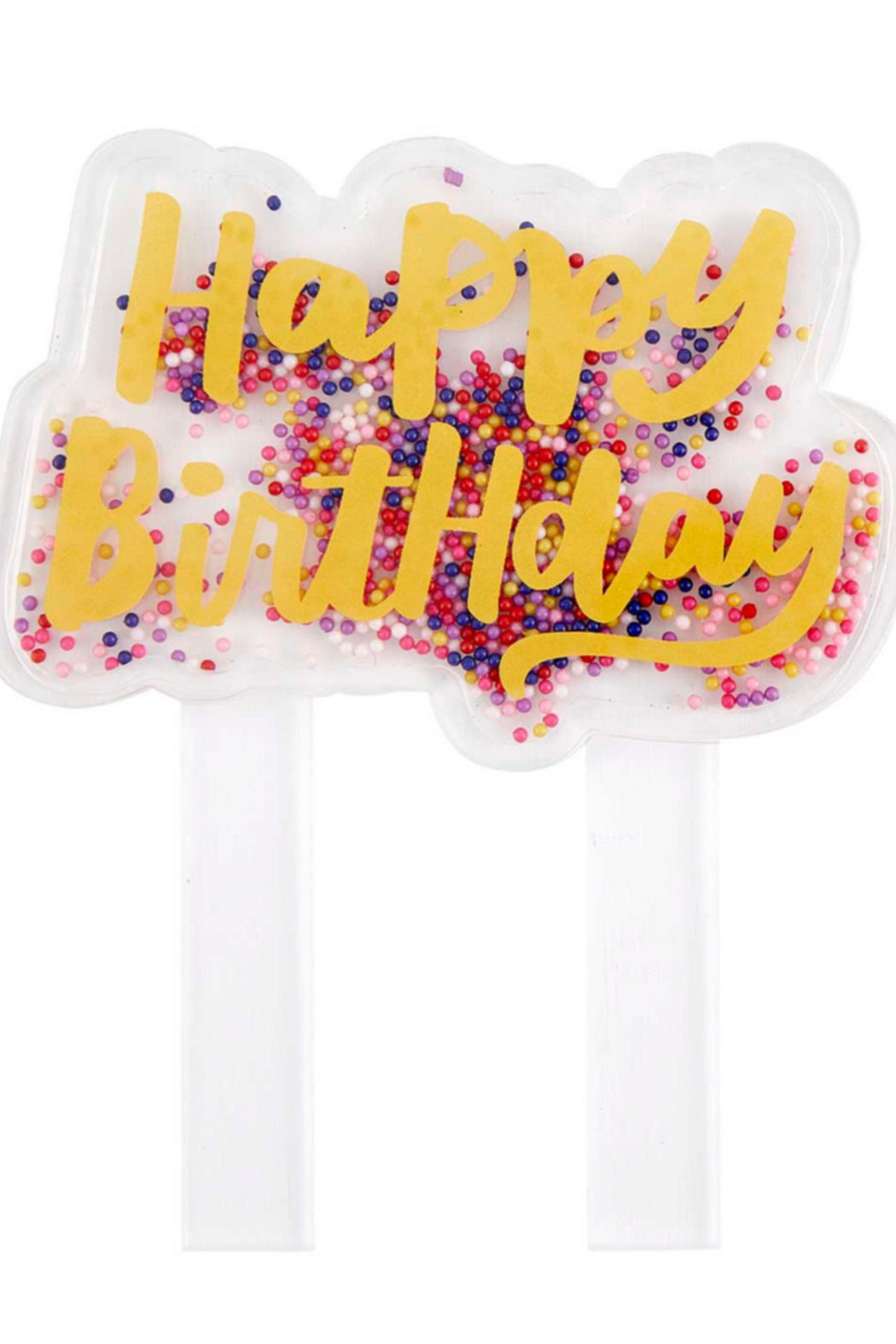 Top any cake in style with this bead filled acrylic cake topper! Makes a great addition to any celebration!