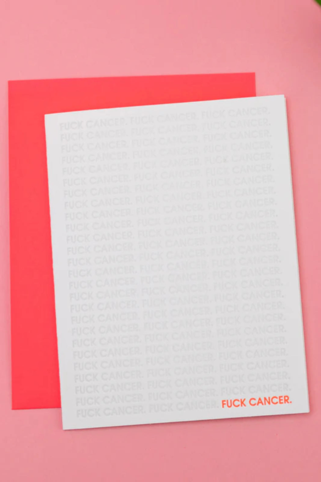 Our "Fuck Cancer" card is letterpress printed on a vintage printing press in sunny California.