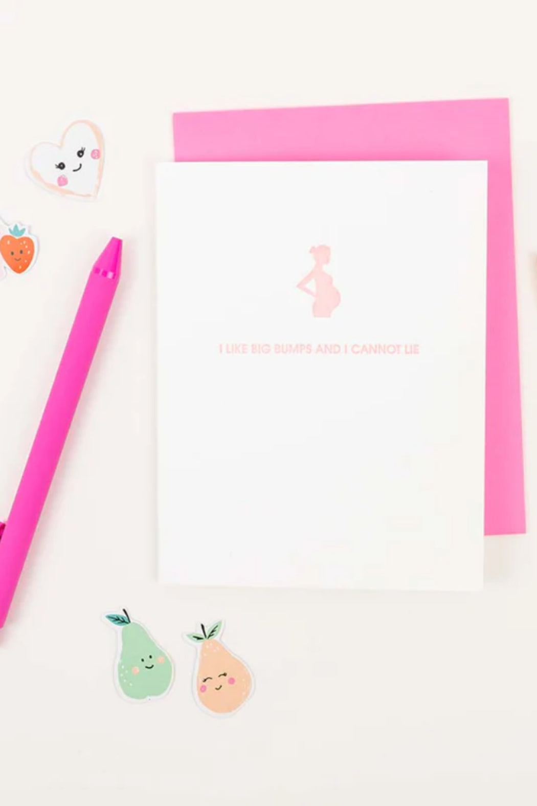 Our "I Like Big Bumps and I Cannot Lie" card is letterpress printed on a vintage printing press in sunny California. Perfect for the soon to be mama.