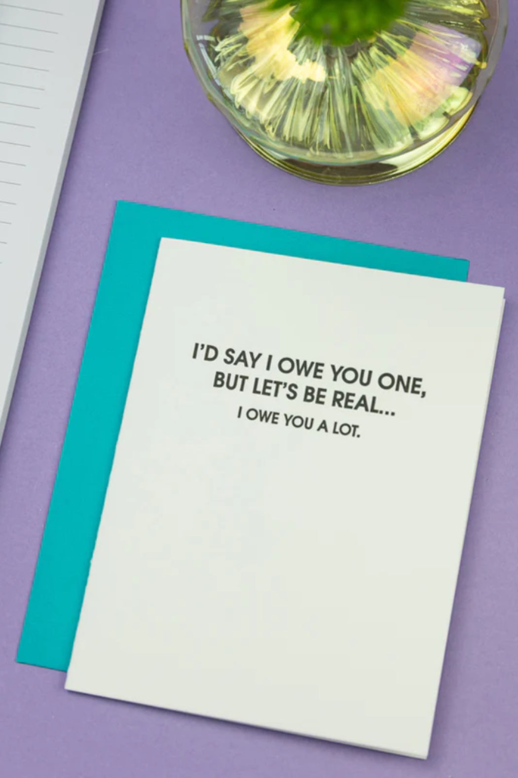 I'd Say I Owe You One, But Lets Be Real--I Owe You A Lot.. - Letterpress Card'