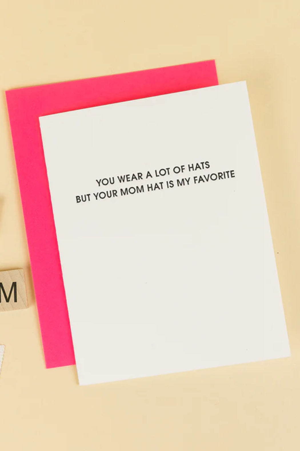Our "You Wear a Lot of Hats, but Your Mom Hat Is My Favorite" card is letterpress printed on a vintage printing press in sunny California.