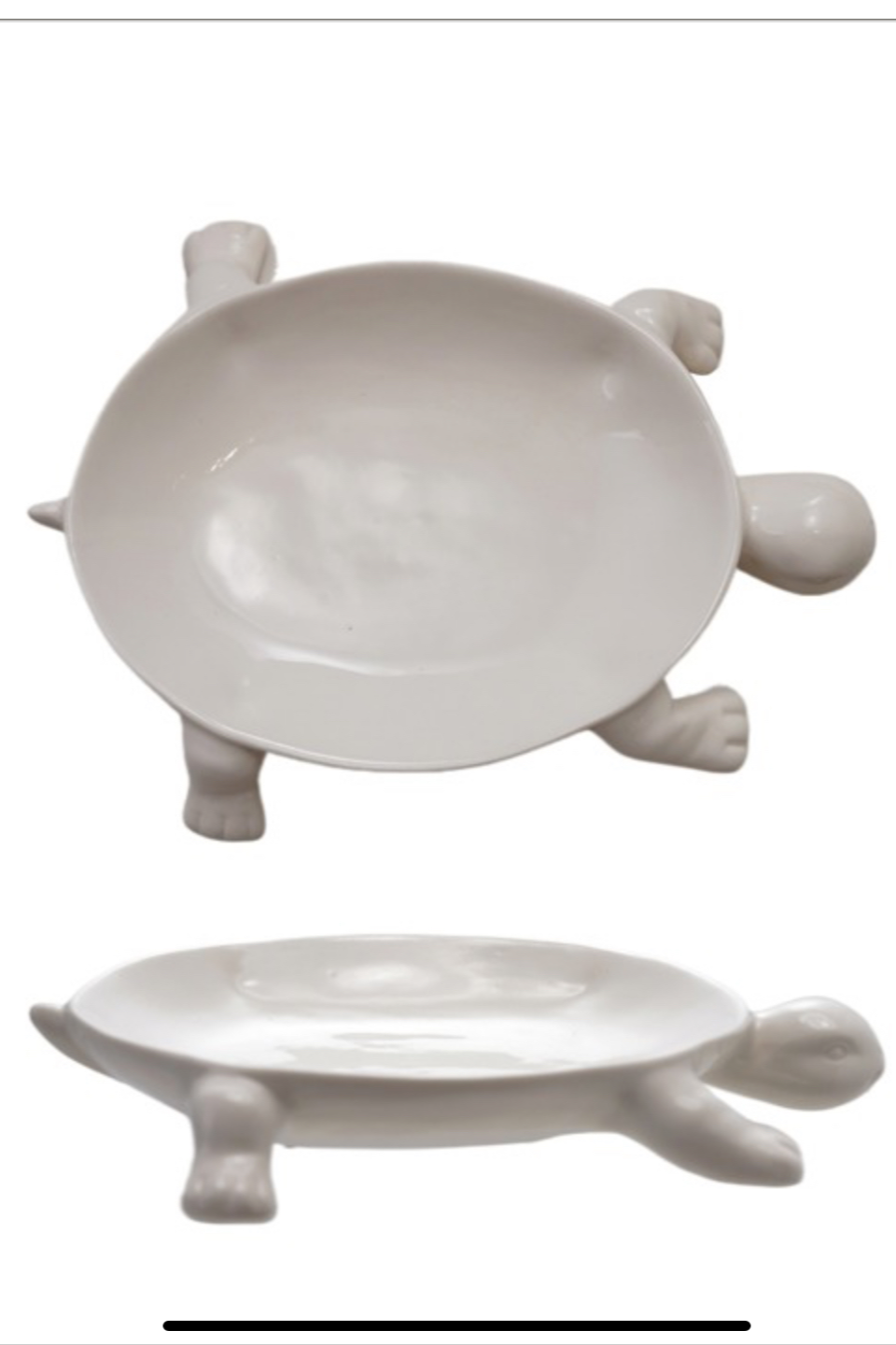 6"L Stoneware Tortoise Shaped Soap Dish, White