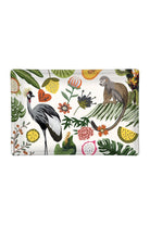 Featuring a fun and festive jungle print. Covered in wild lemons, cute animals, and tons of colors. Beautifully decorated, lightweight glass soap dishes were designed specifically to hold either our large bath soap bars or boxed single soaps. Hand washable and individually boxed. Rectangular: 5.75 x 3.75 x .5" h / 14.6 x 9.5 x 1.3 cm h.