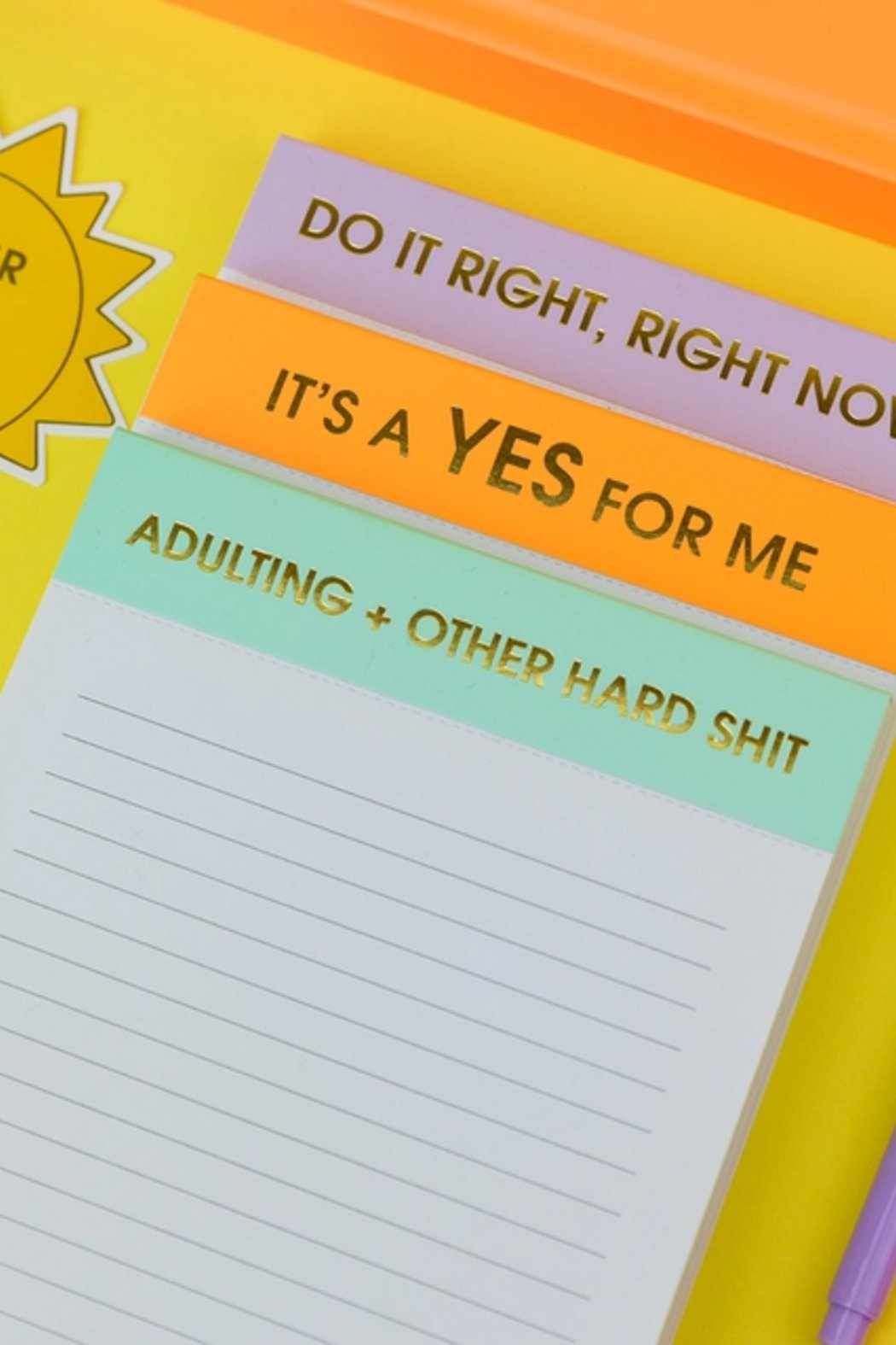 What do you get when you combine exceptionally thick paper, superb perforation and a wildly accurate and often hilarious phrase? Chez Gagné’s perfect notepads. Here to appease even the most OCD of us, our pristine perforated tear and heavy weight lined paper notepads are the ideal writing surface for manically jotting out your honey-do, shit-to-do, reminder or grocery list. Because we all know if it doesn’t get written down, it’s not getting done.