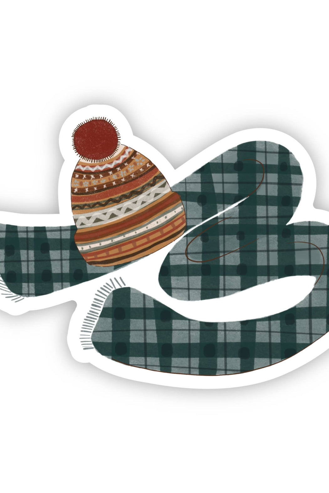 This cozy hat & scarf would look cozy on your coffee mug, water bottle, etc Details:•3.0" x 2.1"• Printed and shipped with care from the U.S.A. • High quality and durable vinyl, indoor and outdoor use• Waterproof and weatherproof We are partnered with ActiveMinds.Org to help spread mental health awareness.
