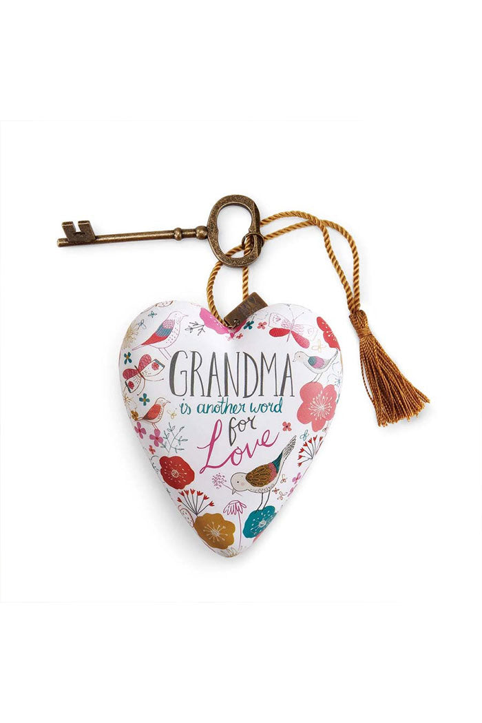 Heart-shaped keepsake symbolizes the bond of friendship and family through meaningful sentiment and vibrant design. A gift-ready sculpture for your grandma. Great gifts for celebrating milestone moments or just because. Comes in special packaging. Ornamental key to hang or stand with the attached key easel. Perfect gift for grandma on mother's day, grandparent's day, her birthday or any day. sentiment "grandma is another word for love". Demdaco grandma art heart by art hearts collection. Made of resin, metal, paper & nylon,