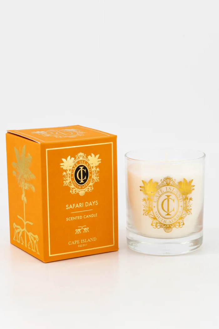 Our signature candle: a luxurious centerpiece for any space. Ideal for dinner parties, self-care rituals, or everyday elegance. A generous gift that's just as tempting to keep for yourself. DESCRIPTION 250ml (approx. 8.45 oz) scented candle packaged in a classy decorated box. Single wick candle. Hand-poured in South Africa, using a soy wax blend and fine perfume oils imported from the Grasse region of France. The elegant Cape Island glass cups can be rinsed and recycled once the candles are done. Approximate burning time: 35 hours Recommendations for use: Always place your candle on a fireproof surface or candle holder. Trim the wick to 1/4" each time before lighting the candle. Never burn a candle completely. For safety, please enjoy your candle until about 1/2 inch of wax remains, then let it rest. Keep your candles in a cool, shaded, and moisture-free area. Avoid placing them in direct sunlight and artificial light. Cleaning: softly wipe the candle’s surface using a soft cloth or nylon fabric. Remove dust and fingerprints by using either a cloth dry or slightly moistened with some water to remove dust and fingerprints. Never leave a burning candle unattended. Keep out of reach of pets and children. Fragrance Notes This fragrance is a loving tribute to the silent, fierce beauty of the African savanna, where nature commands respect. Woody yet fresh, this unisex scent is both grounding and soothing, while still maintaining an exciting edge. Let it transport you to the wilderness, where a quiet mind and adventure await behind every Acacia tree. TOP NOTES: Crisp Bergamot HEART NOTES: Wild Sage, Ancient Cypress, Musk BASE NOTES: Spiced Patchouli Leaves, Calming Cedarwood Non-Profit Beneficiary: Peace Parks Foundation A percentage of sales from this Collection is donated to The Peach Park Foundation, a transnational initiative founded by Nelson Mandela, HRH Prince Bernhard of the Netherlands, and Dr Anton Rupert.