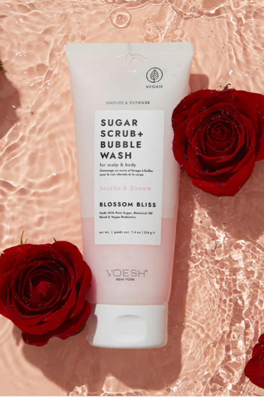 Scrub first. Wash second. Treat your skin and scalp to our Blossom Bliss Sugar Scrub + Bubble Wash, a non-abrasive, scrub-to-bubble formula that gives you the best of both worlds. Enriched with pure sugar, this sugar scrub and body wash gently sloughs away dead skin cells then turns into a luxurious lather that leaves you feeling so fresh and so clean from head to toe! Vegan probiotics strengthen and regenerate your skin barrier while a botanical oil blend hydrates and soothes your skin and scalp. The soft, floral scent will instantly transport you to a field of flowers. Exfoliate, cleanse, and moisturize all at once–go ahead, rub it in!