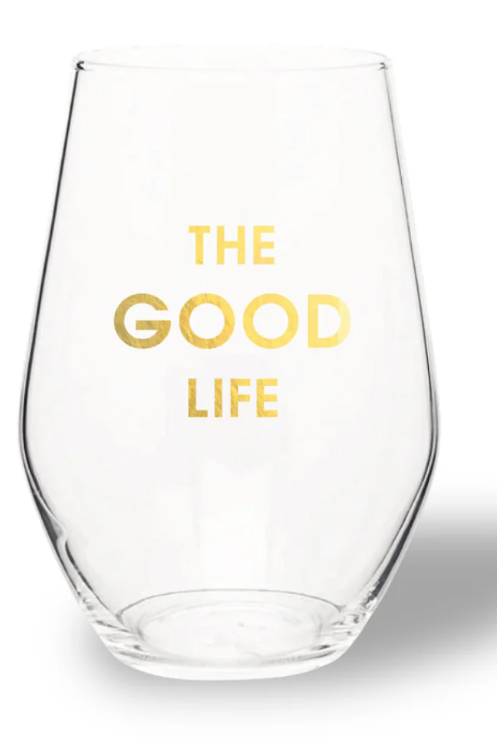 The Good Life. Savor it. Enjoy It. Sip it in style with our "The Good Life" gold foil stemless wine glass.