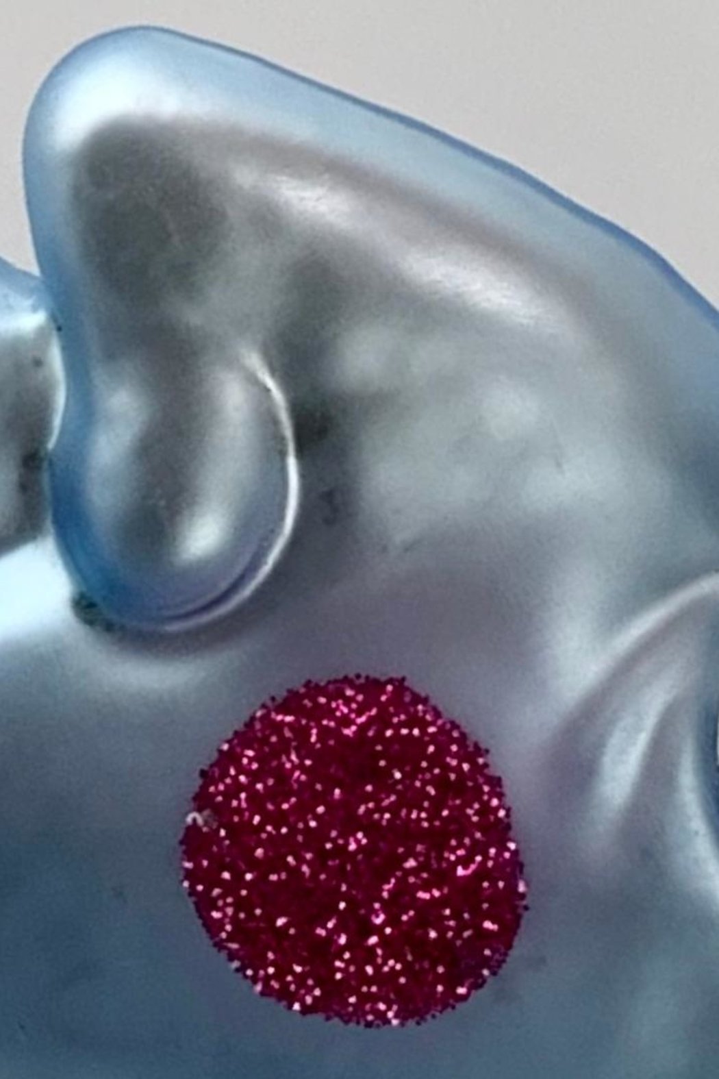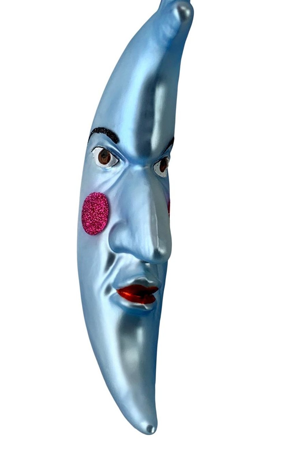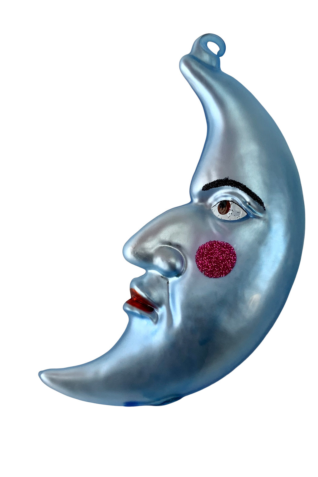 Quality glass moon ornament with beautiful hand painting and glitter details.