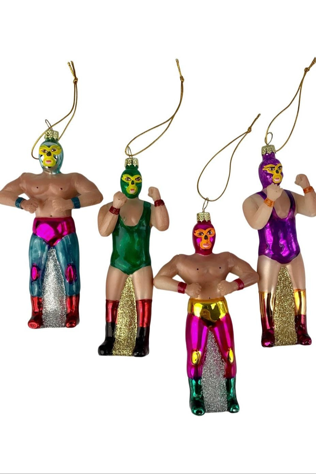 Lucha Libre Figures, the iconic image of freestyle professional wrestling figure from Mexico. Quality hand painted on blown glass. 4 different figures.. You will receive 1 figure selected at random.