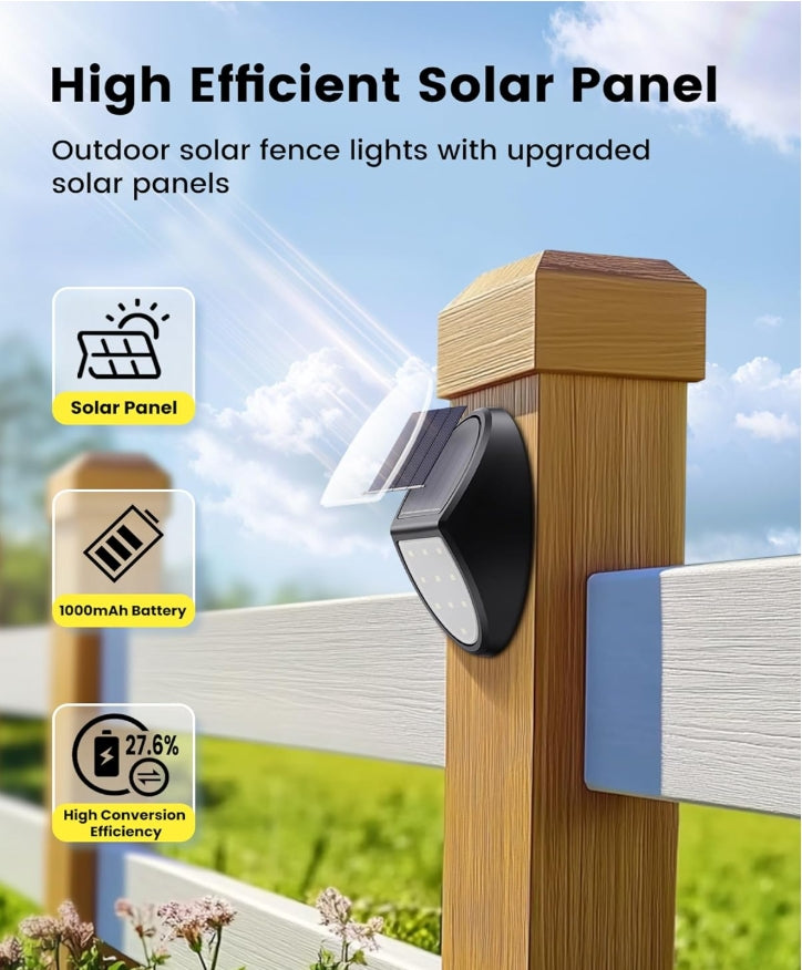 8-Pack Solar Fence Lights, IP68 Waterproof, White Light for Deck, Yard, Garden