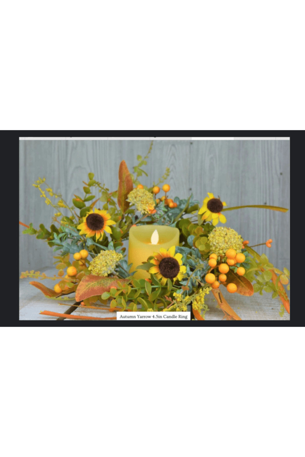 This 6.5in Autumn Yarrow Candle Ring is the perfect addition to your fall decor. Handcrafted using lifelike yarrow flowers, this candle ring adds beauty and warmth to any space. Its delicate design and vibrant colors make it a gorgeous centerpiece for your autumn tablescape.