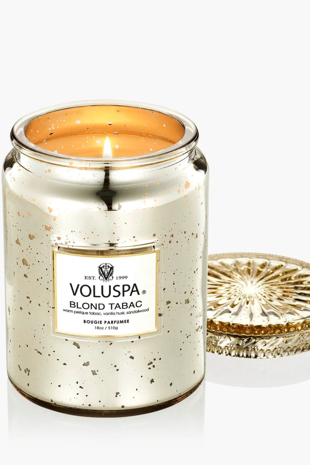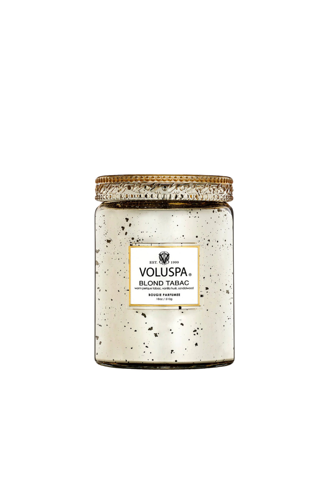 Fragrance Family: Warm / Spiced Notes of Warm Perique Tabac, Vanilla Husk & Sandalwood. Warm, sultry, and endlessly sophisticated—the Blond Tabac Large Jar Candle turns any space into a cozy, golden-hour mood. Notes of warm perique tabac, vanilla husk, and sandalwood wrap around you like a well-worn leather jacket—rich, smooth, and quietly confident. Perfect for setting the vibe for slow mornings, chic dinner parties, or nights in that feel like a luxury hotel stay. Features: - Burn Time: ~ 100 hours - Fill (oz): 18 - Fill (g/ml): 510 - Natural Wick(s): 1 - Vegan - Imperial Dimensions: 3.74" D x 5.28" H - Metric Dimensions: 95 mm x 134 mm