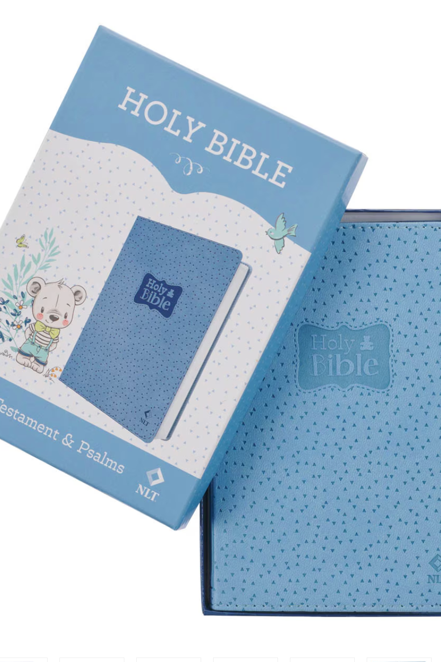 Featuring the New Testament and Psalms, this Bible is printed in the accessible New Living Translation, perfect for young readers. It's crafted with a binding that stays open, and a clear, dual-column text layout. A blue satin ribbon marker is included to easily save your spot.