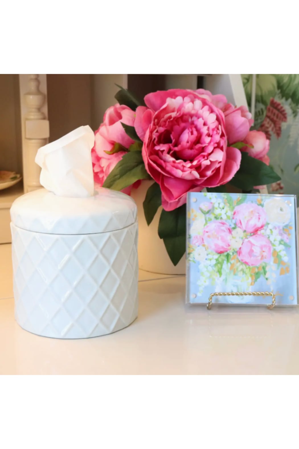 Now introducing the Chloe, a decorative tissue vessel you will be proud to display. She’s inspired by the girl next door. With lady like class, she’s refined, always wearing pearls and she’s never met a stranger. The Details: Ceramic re-fillable tissue vessel Dimensions: 5” x 5” Please note that due to the handmade nature of this product, some vessels may have slight imperfections.