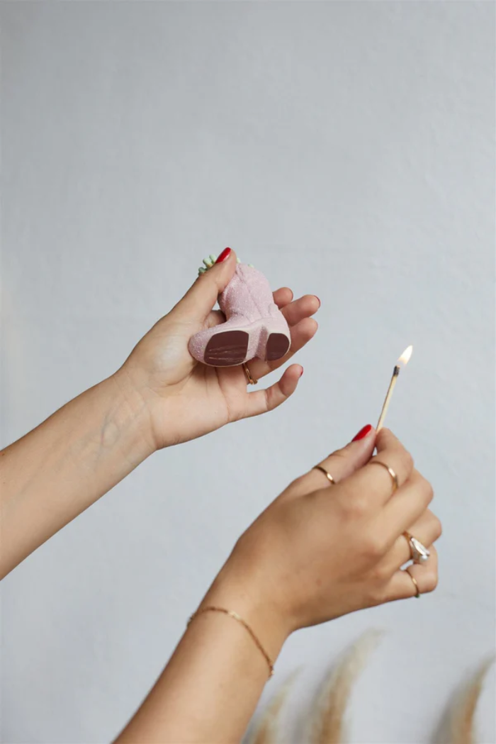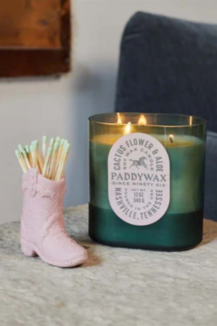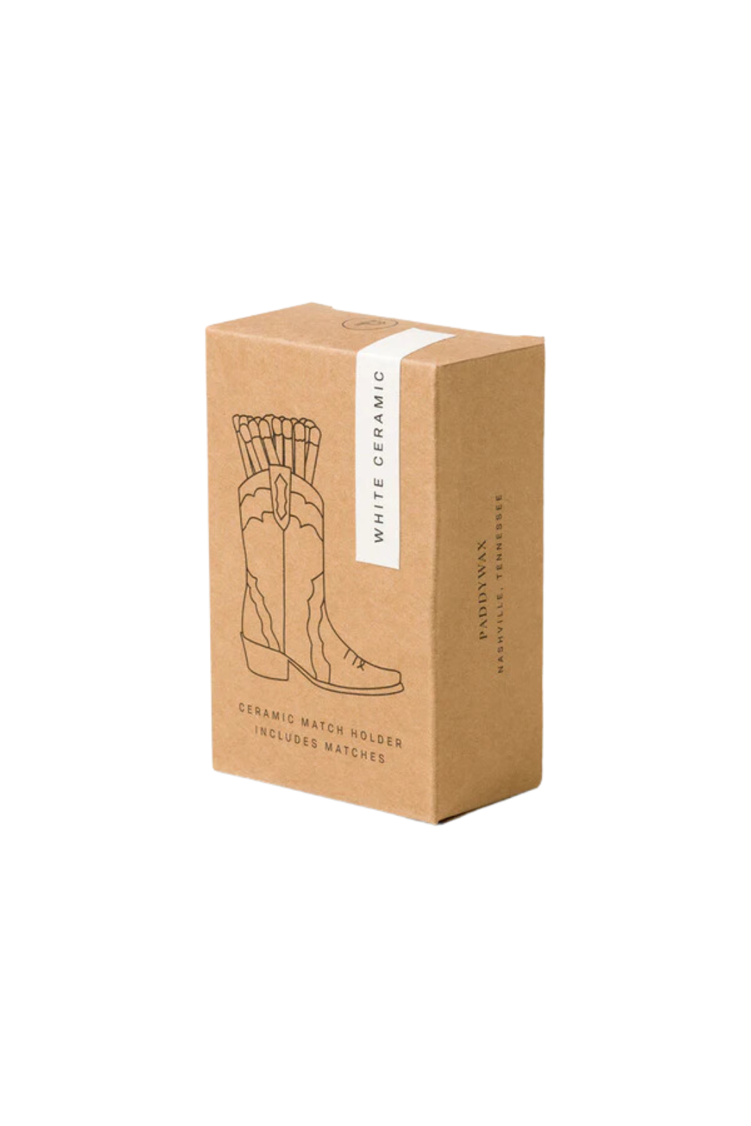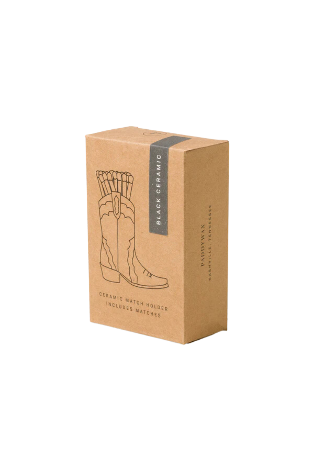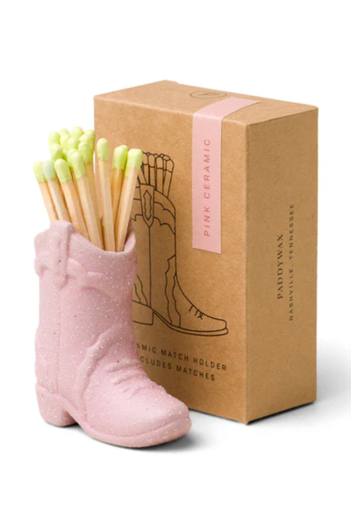 This Cowboy Boot Match Holder is perfect for setting the mood for your favorite Western-themed candlelight ritual. This vintage-inspired ceramic holder holds 25 safety matches, which can be lit with a strike on the boot's bottom. This matching set is visually appealing and a useful accessory for your shelves. A perfect gift set or bookshelf accessory also for Music City or Western fans.