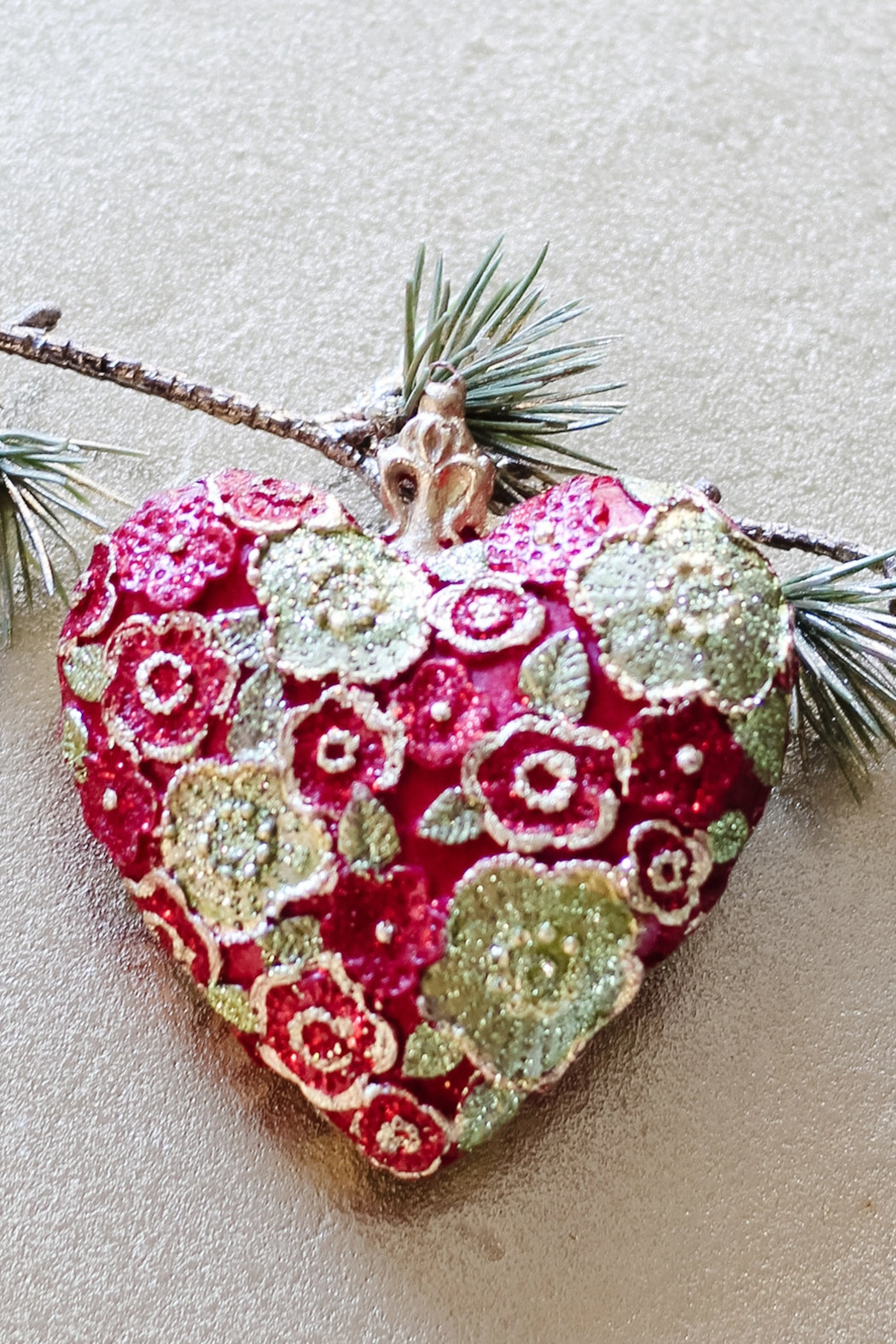 Featuring the Beaded Petals pattern with intricate details and in the classic red and citron color combination. This heart keepsake ornament is designed to be cherished and can be displayed during both Valentine's and Christmas, year after year. A beautiful and special gifting ornament.