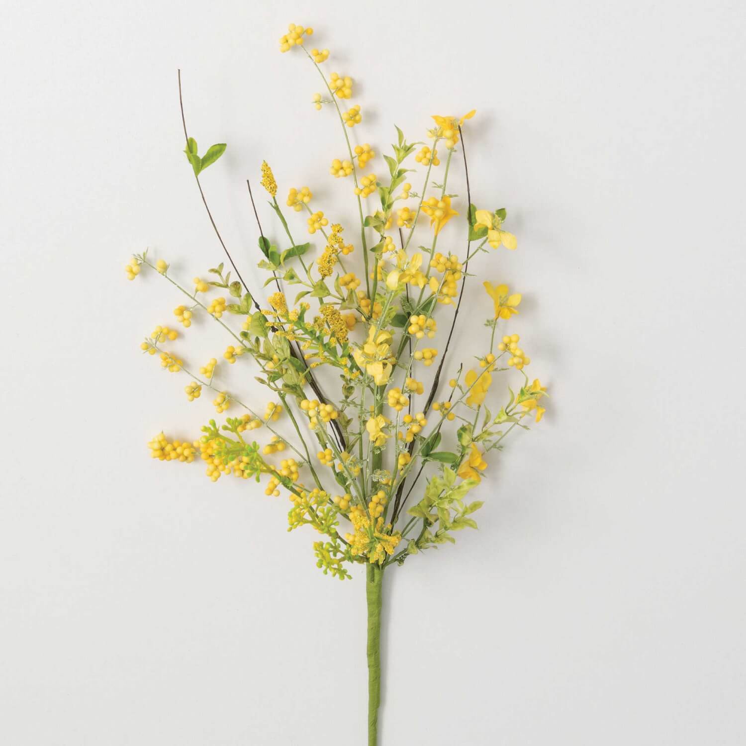 Bring your interior space to life with a touch of lasting nature. This yellow wispy collection is the perfect way to add texture and interest to arrangements and so much more. The beautiful plastic florals make this a long-lasting accent.
