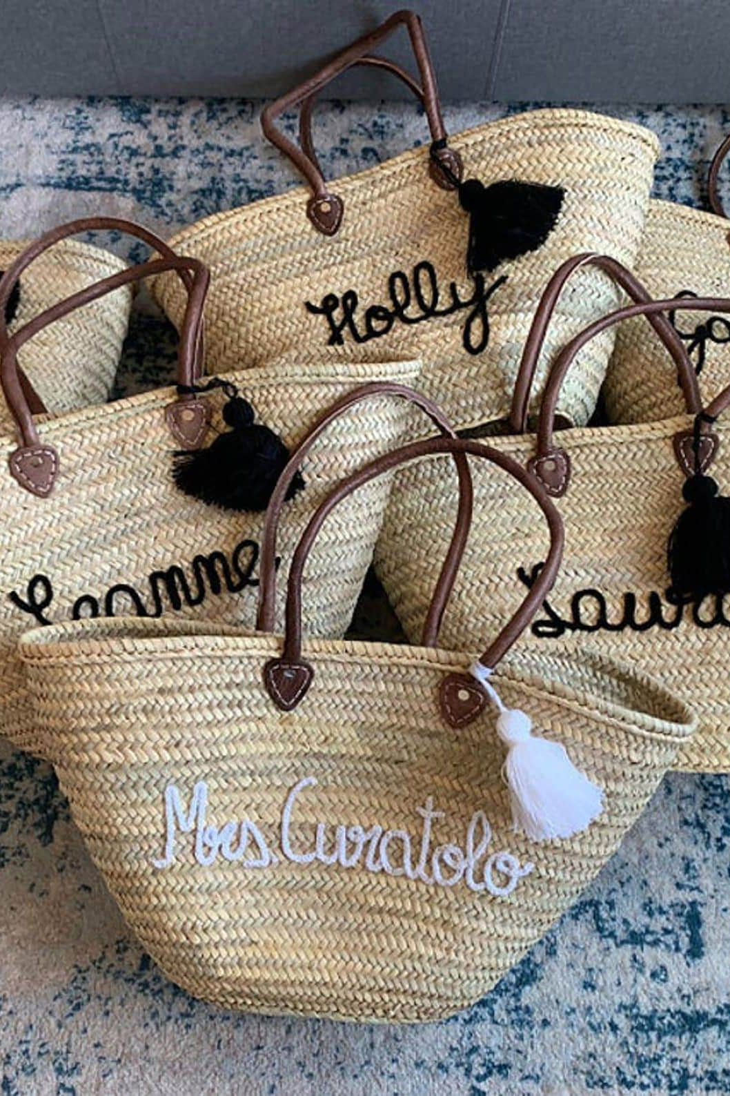 a woven straw bag personalized with an initial is a straw bag with leather handles perfect as a gift for women. This moroccan basket is handcrafted with natural straw and combined with leather, making it a lovely straw purse bag as a gift for women. Very versatile, this natural basket is perfect anytime and everywhere, you can use it as a beach bag, for shopping, for the pool, for going to the grocery, etc. Finally, you can use your straw bag for everyday use, always with style and authenticity. Size: H35cm x W50cm x D30cm (11.8″ x 19.7″ x 13.8″) All sizes are approximate Add your personalization Example : Tessa (Red), Hara (Green), Kiki (Red), Jessica (Pink), Samantha (black), Color avialabale Black White Blue navy Blue sky Green Red Yellow Baby Pink Strong Pink Purple Orange Beige