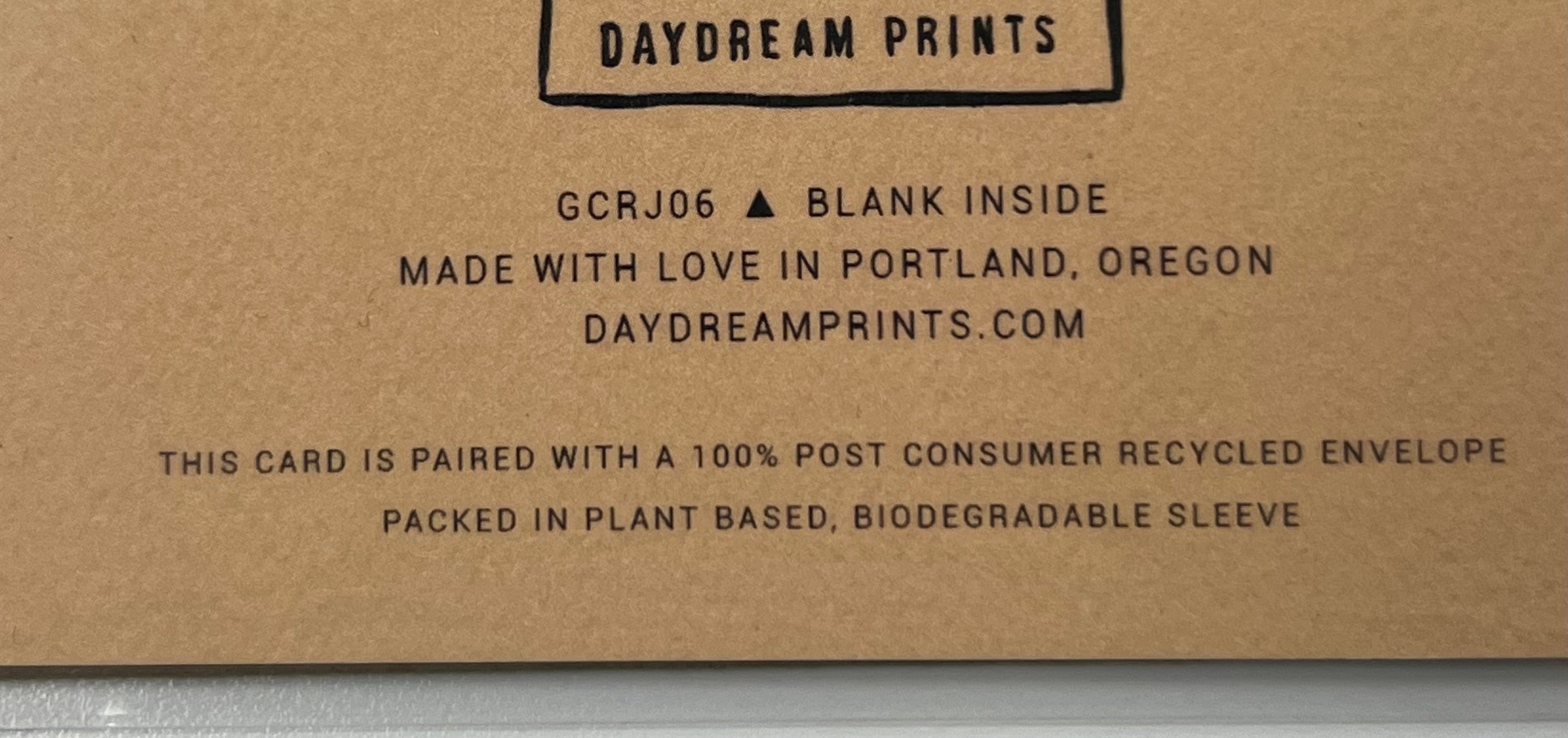 Send smiles and well wishes with these sustainable, handmade greeting cards from Daydream Prints. Each card is crafted with 100% recycled materials and packaged in a biodegradable sleeve. Spread joy while caring for the environment.