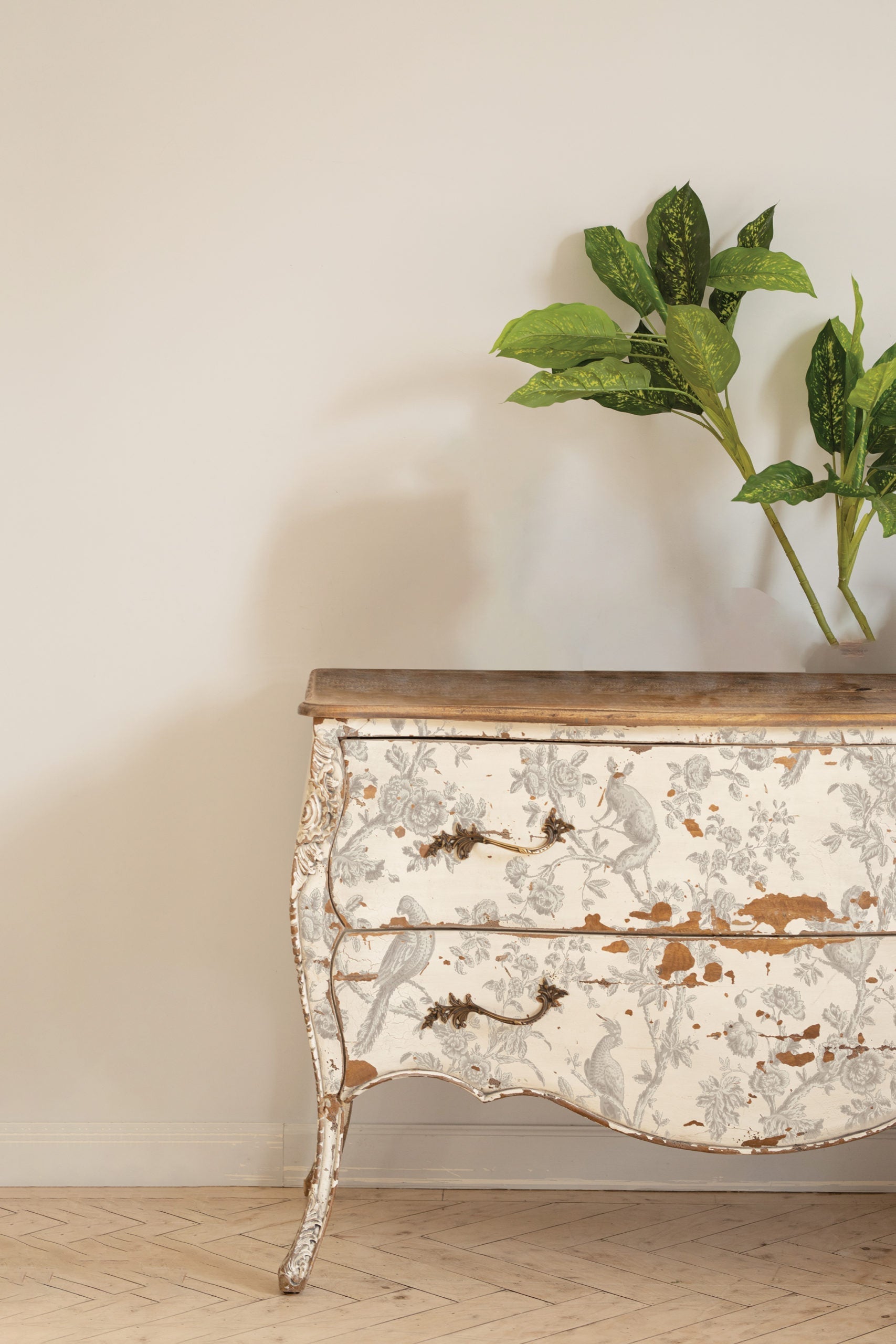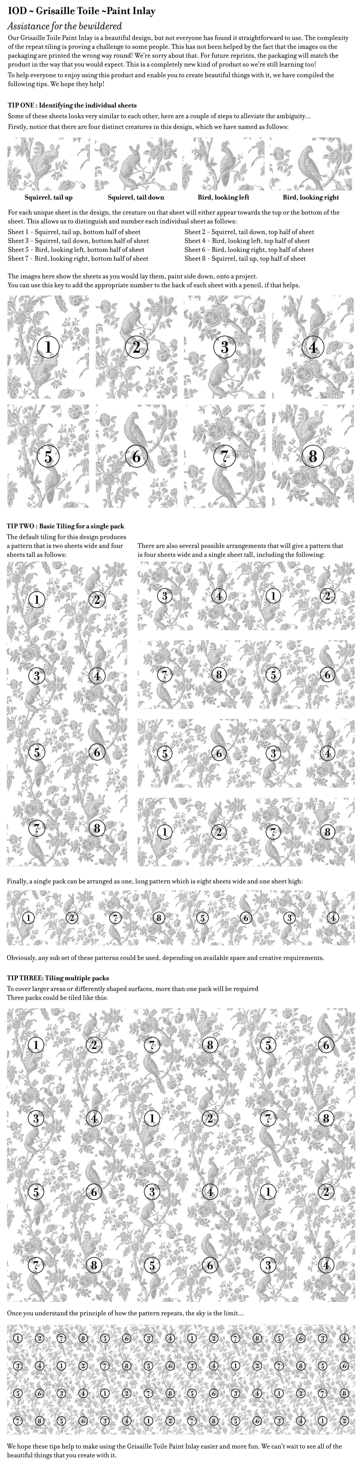IOD paint and lays are made from a proprietary artist quality paint which they formulated specifically for decorative use. They are organic in nature and the transfer of the painted design will be slightly varied and unique for each individual. The results are visually interesting, texturally complex, and often inherently distressed. The paint formula is active until sealed. That means that you can manipulate it and apply special techniques or a custom touch before you seal your piece. And, as if once isn't enough, you can often get a beautifully faded second impression, with a residual pigment on your left over inlay sheets. Depending on the techniques and colors you're using with your paint inlay, sometimes you can even get a third impression!
