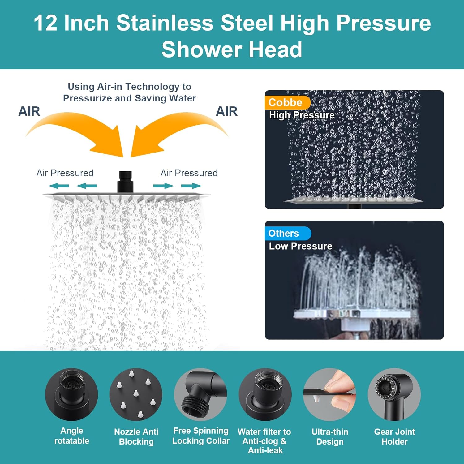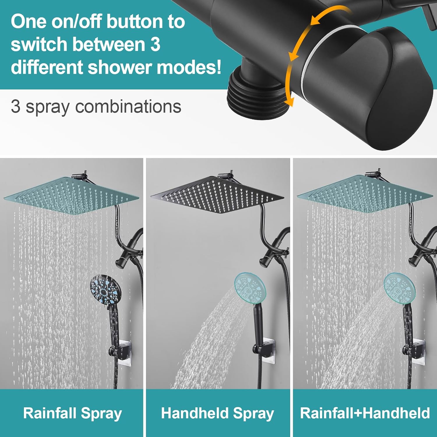 Metal 3-Way Rain Shower Head, High Pressure Shower Head, Dual Shower Heads with Handheld Adjustable Spray Combo