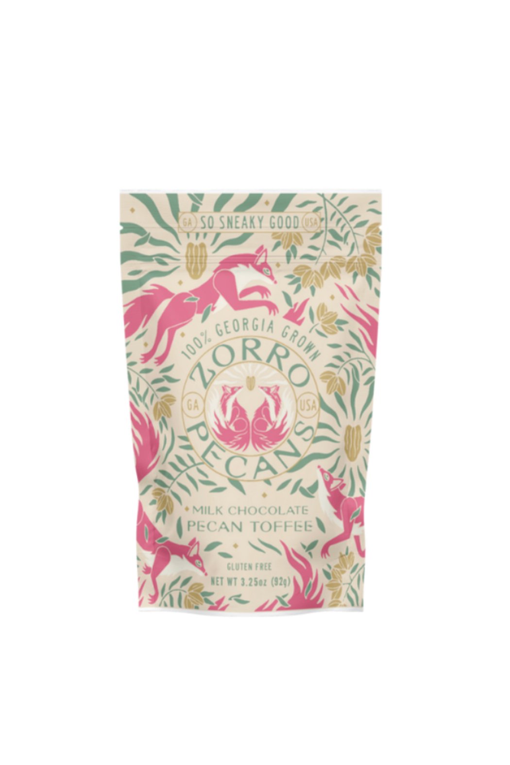 Our fan favorite Pecan TOFFEE now in a smaller snack sized bag… you can take this anywhere! Grab 1 for the road or a boxful for stocking stuffers…perfect both ways! 3.25 oz, 12 bag minimum Ingredients: Milk Chocolate (Milk Chocolate [Sugar, Milk, Cocoa Butter, Chocolate Liquor], Soya Lecithin, and Vanillin [an artificial flavor]), Sugar, Corn Syrup, Pecans, Salted Butter (Pasteurized Cream, Salt), Lecithin, Soybean Oil, Canola Oil.